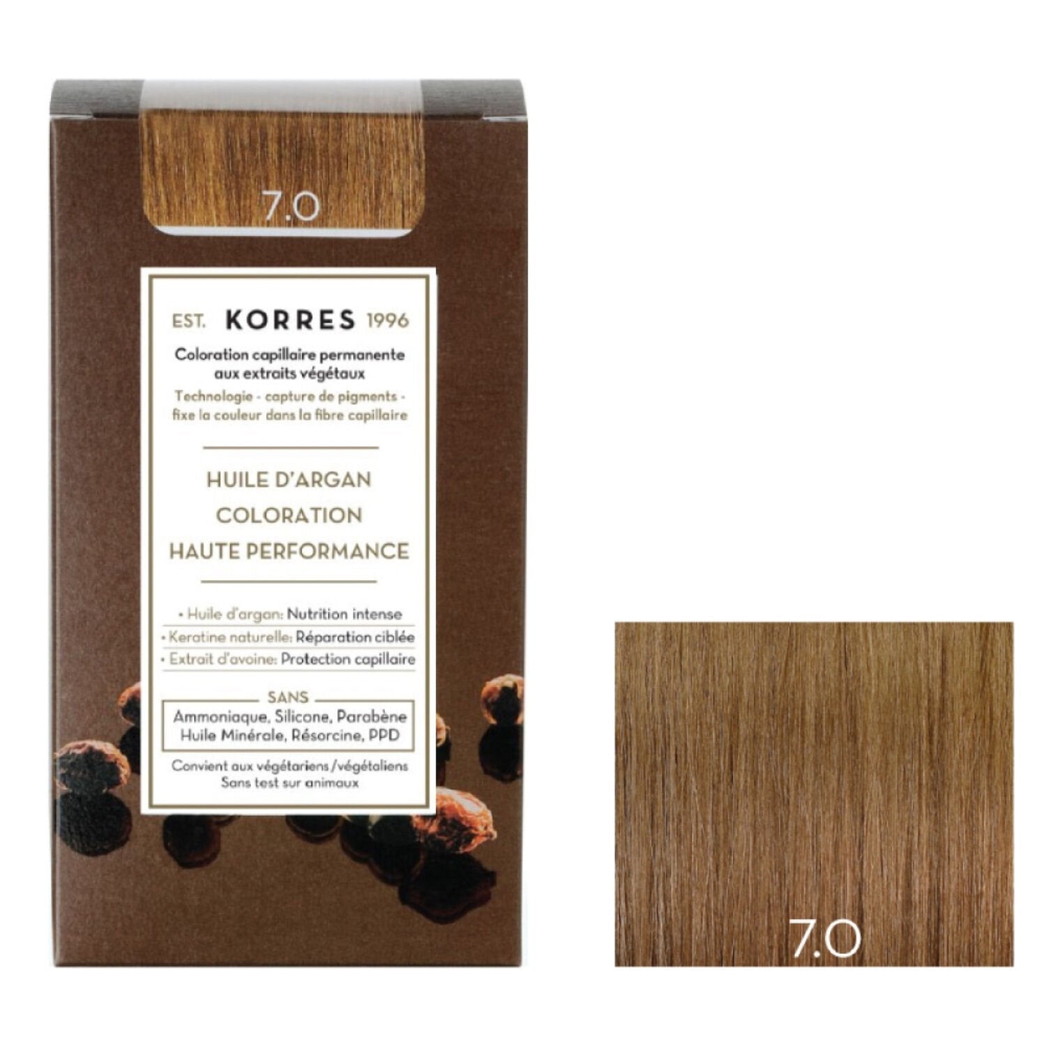 Coloration 7. 0 Blond Soin Huile d'Argan Couvre 100% Cheveux Blancs Sans Amoniaque Korres KORRES