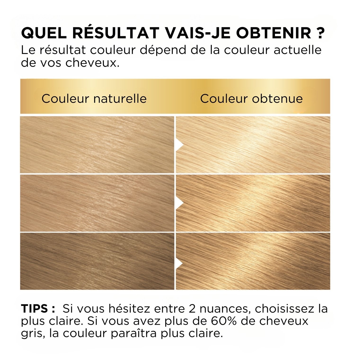 1171216 - INGREDIENTS: AQUA / WATER - HYDROGEN PEROXIDE - CETEARYL ALCOHOL - SODIUM SALICYLATE - TRIDECETH-2 CARBOXAMIDE MEA - PHOSPHORIC ACID - CETEARETH-25 - TETRASODIUM ETIDRONATE - TETRASODIUM PYROPHOSPHATE - GLYCERIN (F.I.L. C202319/1). - 1229074 - INGREDIENTS: AQUA / WATER - CETEARYL ALCOHOL - STEARAMIDOPROPYL DIMETHYLAMINE - ISOPROPYL MYRISTATE - CETYL ESTERS - HELIANTHUS ANNUUS SEED OIL / SUNFLOWER SEED OIL - TRITICUM VULGARE GERM OIL / WHEAT GERM OIL - BUTYROSPERMUM PARKII BUTTER / SHEA BUTTER - CAPRYLYL GLYCOL - CITRIC ACID - TARTARIC ACID - SALICYLIC ACID - LINALOOL - LIMONENE - CITRONELLOL - BENZYL ALCOHOL - BENZYL SALICYLATE - PARFUM / FRAGRANCE (F.I.L. Z70045583/1). - 1268641 F - INGREDIENTS: AQUA / WATER - DECETH-3 - AMMONIUM HYDROXIDE - LAURETH-12 - COCAMIDE MIPA - OLETH-30 - DECETH-5 - GLYCERIN - OLEIC ACID - OLEYL ALCOHOL - COCOS NUCIFERA OIL / COCONUT OIL - m-AMINOPHENOL - ASCORBIC ACID - SODIUM METABISULFITE - HYDROXYETHYLCELLULOSE - HYDROXYBENZOMORPHOLINE - SODIUM PHOSPHATE - ETHANOLAMINE - TRITICUM VULGARE GERM OIL / WHEAT GERM OIL - THIOGLYCERIN - POLYQUATERNIUM-6 - POLYQUATERNIUM-67 - TOLUENE-2,5-DIAMINE - POLYSORBATE 60 - SIMMONDSIA CHINENSIS SEED OIL / JOJOBA SEED OIL - DISODIUM PHOSPHATE - TETRASODIUM GLUTAMATE DIACETATE - TETRASODIUM EDTA - 2,4-DIAMINOPHENOXYETHANOL HCL - PARFUM / FRAGRANCE (F.I.L. Z70050380/1). Les listes d'ingrédients entrant dans la composition des produits de notre marque sont régulièrement mises à jour. Avant d'utiliser un produit de notre marque, vous êtes invités à lire la liste d'ingrédients figurant sur son emballage afin de vous assurer que les ingrédients sont adaptés à votre utilisation personnelle