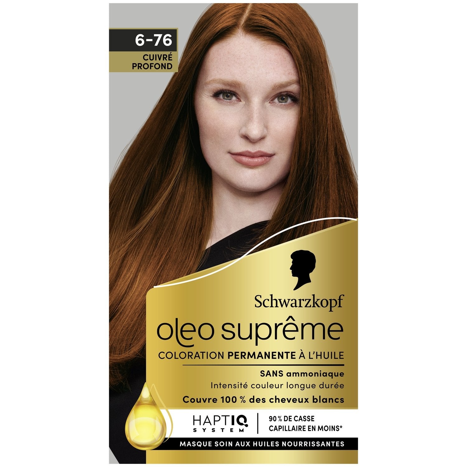 Coloration Permanente 6-76 Cuivré Profond Sans Ammoniaque Longue Durée Couvre 100% Cheveux Blancs Oleo Supreme SCHWARZKOPF
