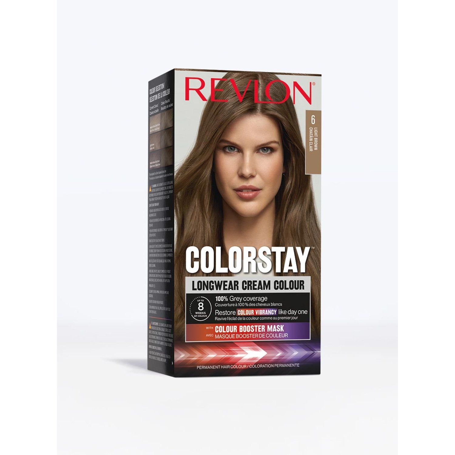 Coloration Permanente 6 Châtain Clair Couvre 100% Cheveux Blancs Huiles Nourrissantes Booster de Couleur Colorstay REVLON