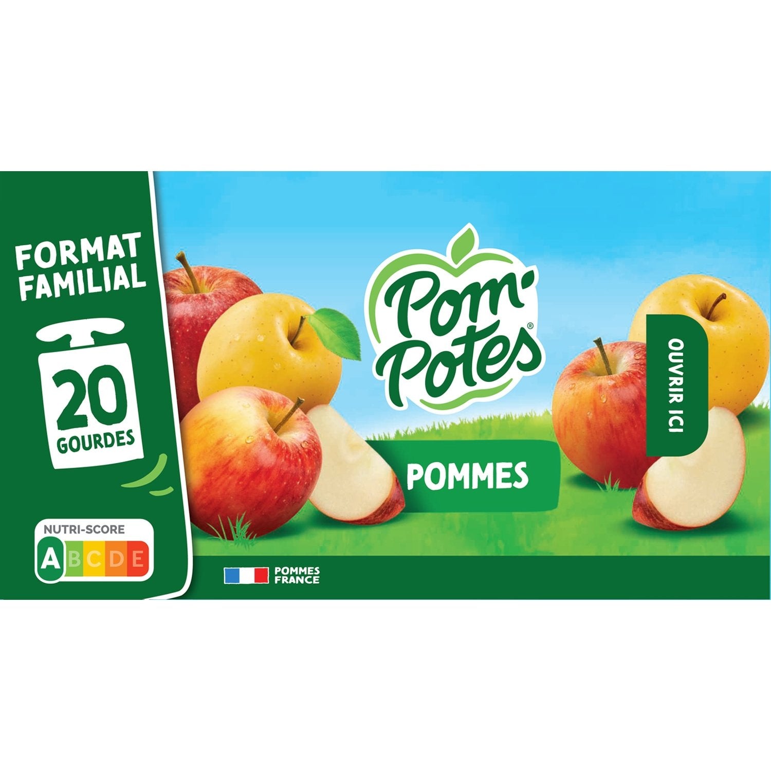 POM'POTES®, c'est le goûter à emporter partout, élaboré à partir de pommes récoltées à la main. Chez POM'POTES®, on s'engage pour le bien-être et le plaisir des petits et des grands dégourdis ! Chacune de nos gourdes est allégée en sucres* et correspond à 1 des 5 portions de fruits et légumes recommandées quotidiennement. * 30% de sucres en moins qu'une compote classique.