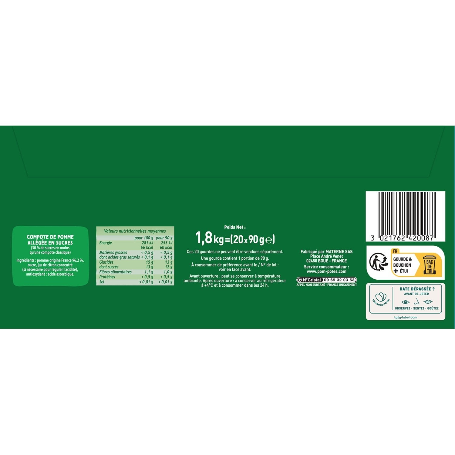 Compote de pomme allégée en sucres (30% de sucres en moins qu'une compote classique).