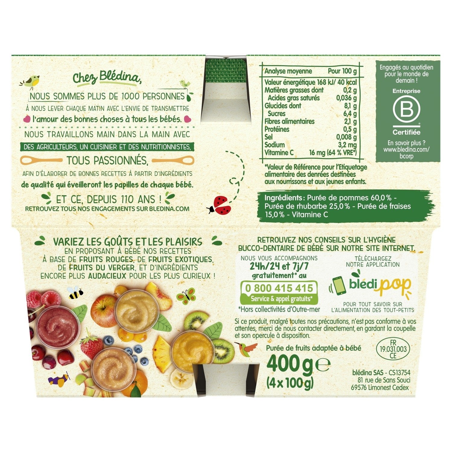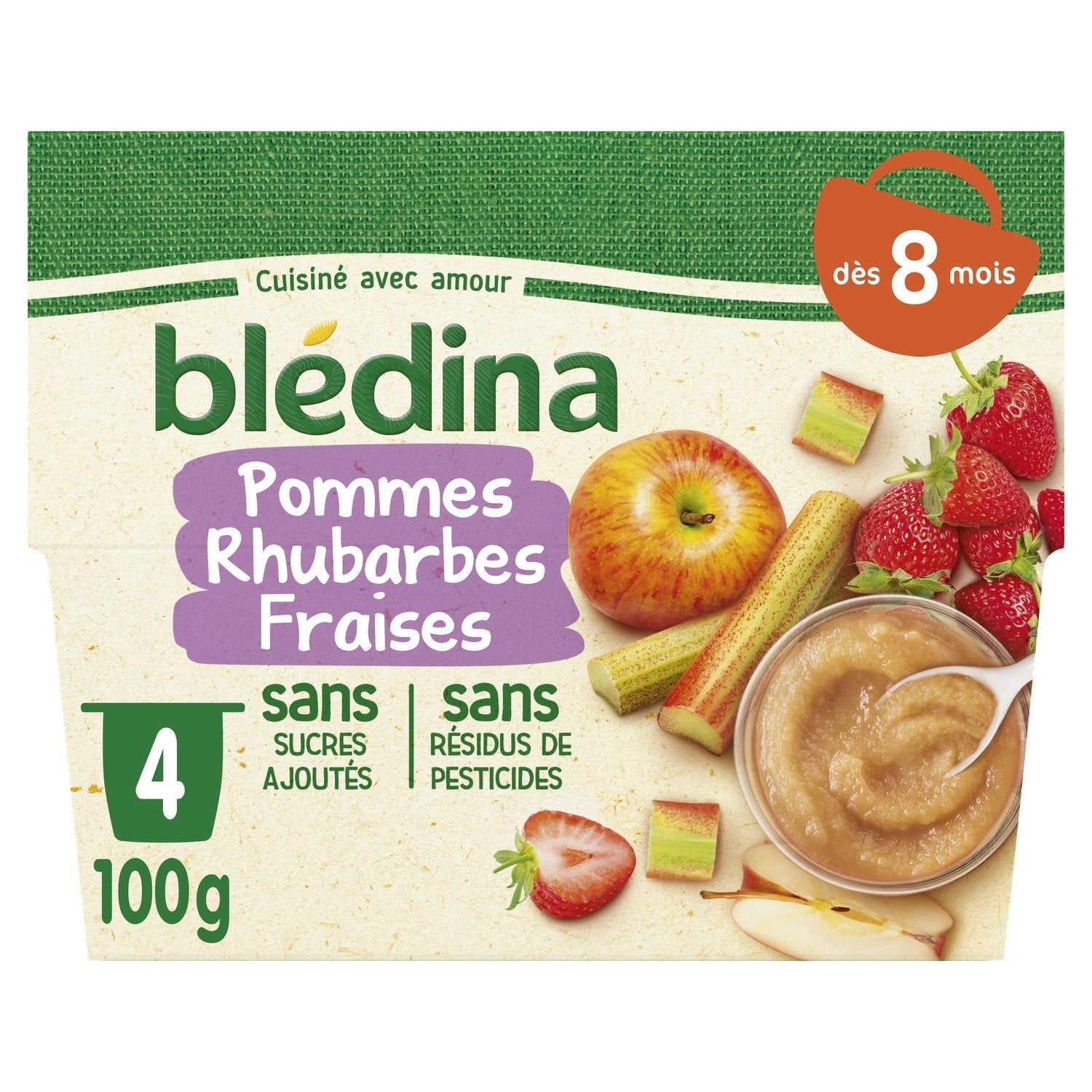 Compotes Bébé Dès 8 Mois Pommes Rhubarbes Fraises BLEDINA