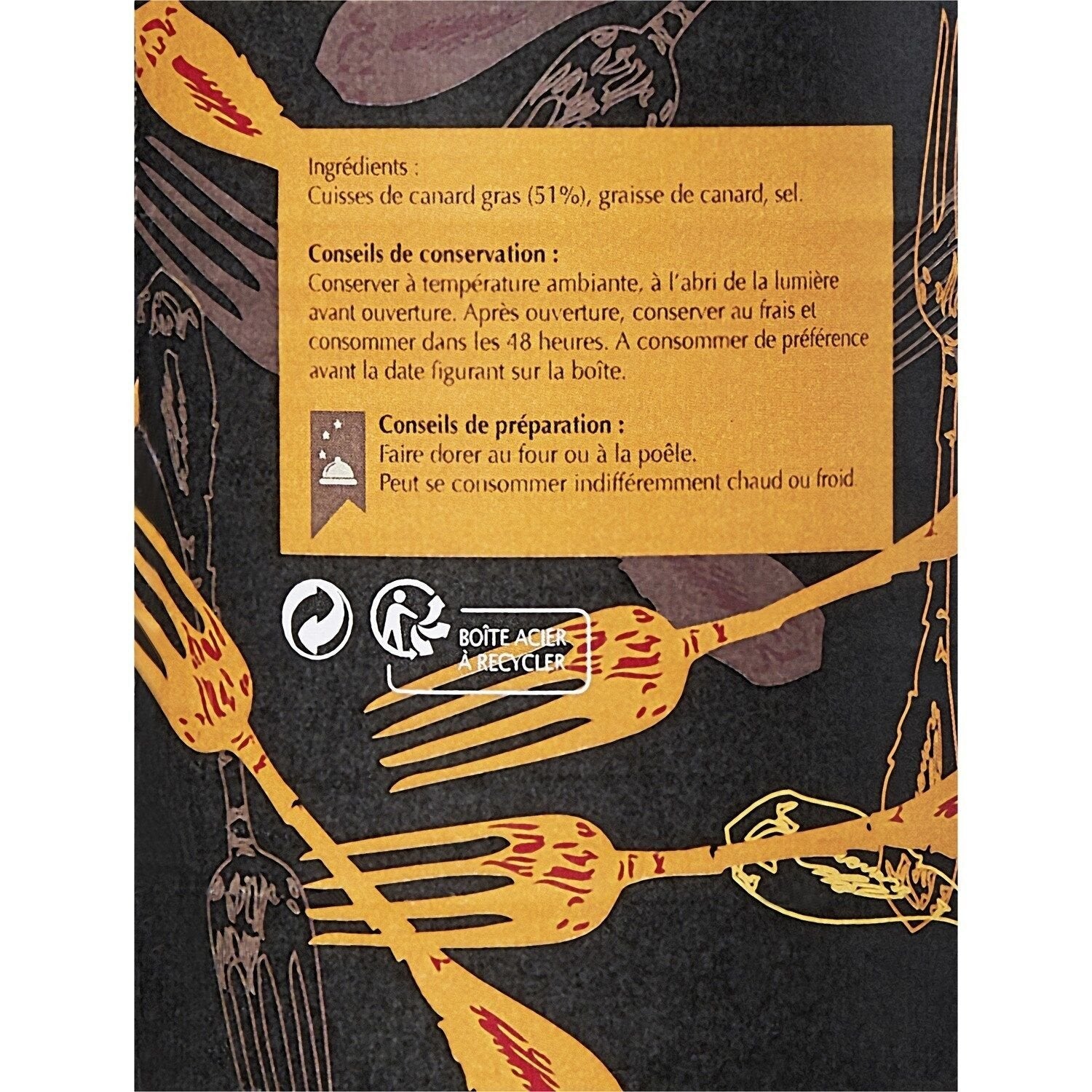 Cuisses de canard gras (51%), graisse de canard, sel.