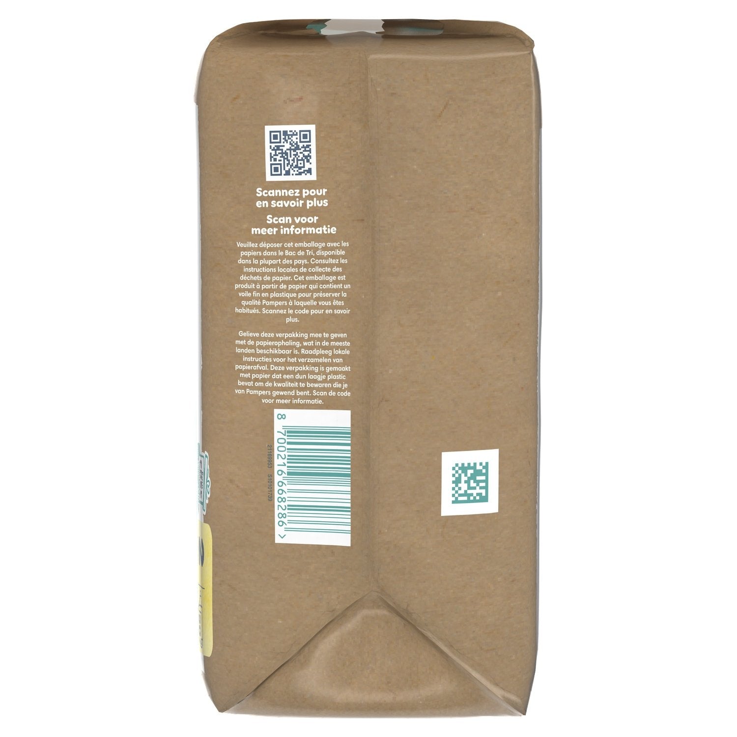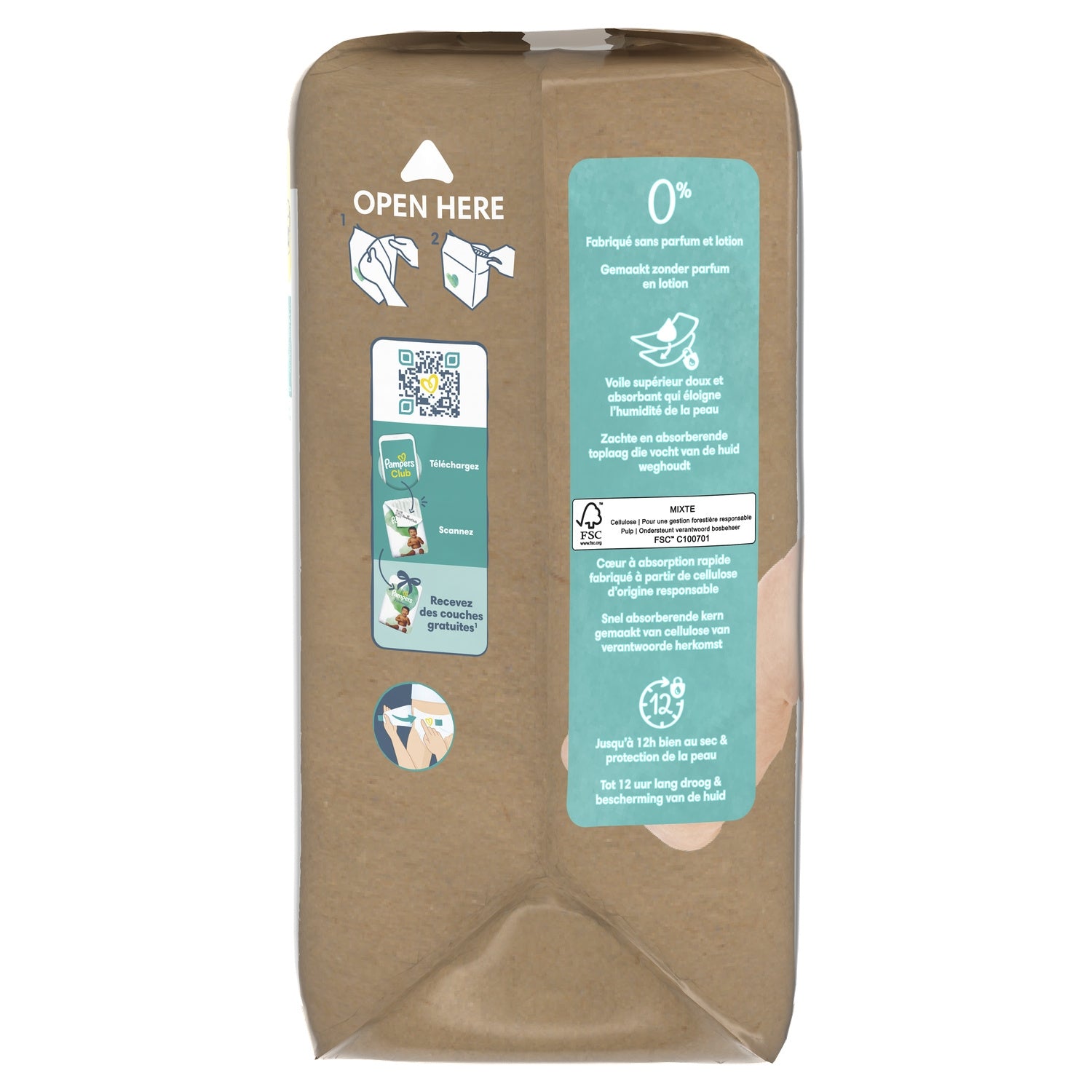Protection douce de la peau avec 100% d'absorption Pampers ,Une peau protégée et bien au sec jusqu'à 12 h , Poche Stop & Protect aide à capturer les fuites à l'arrière de la couche ,0% de parfum et lotion ,Hypoallergénique* et approuvée dermatologiquement (*conçue pour minimiser le risque de réactions allergiques) , Avec de la cellulose issue de forêts durablement gérées et certifiées FSC et d'autres sources contrôlées, Certifiée Standard 100 par OEKO-TEX et approuvée par les dermatologues de la Skin Health Alliance (la SHA approuve les couches Pampers comme étant sans danger au contact de la peau de bébé. En savoir plus sur pampers.fr) ,À utiliser avec les lingettes pour bébé Pampers