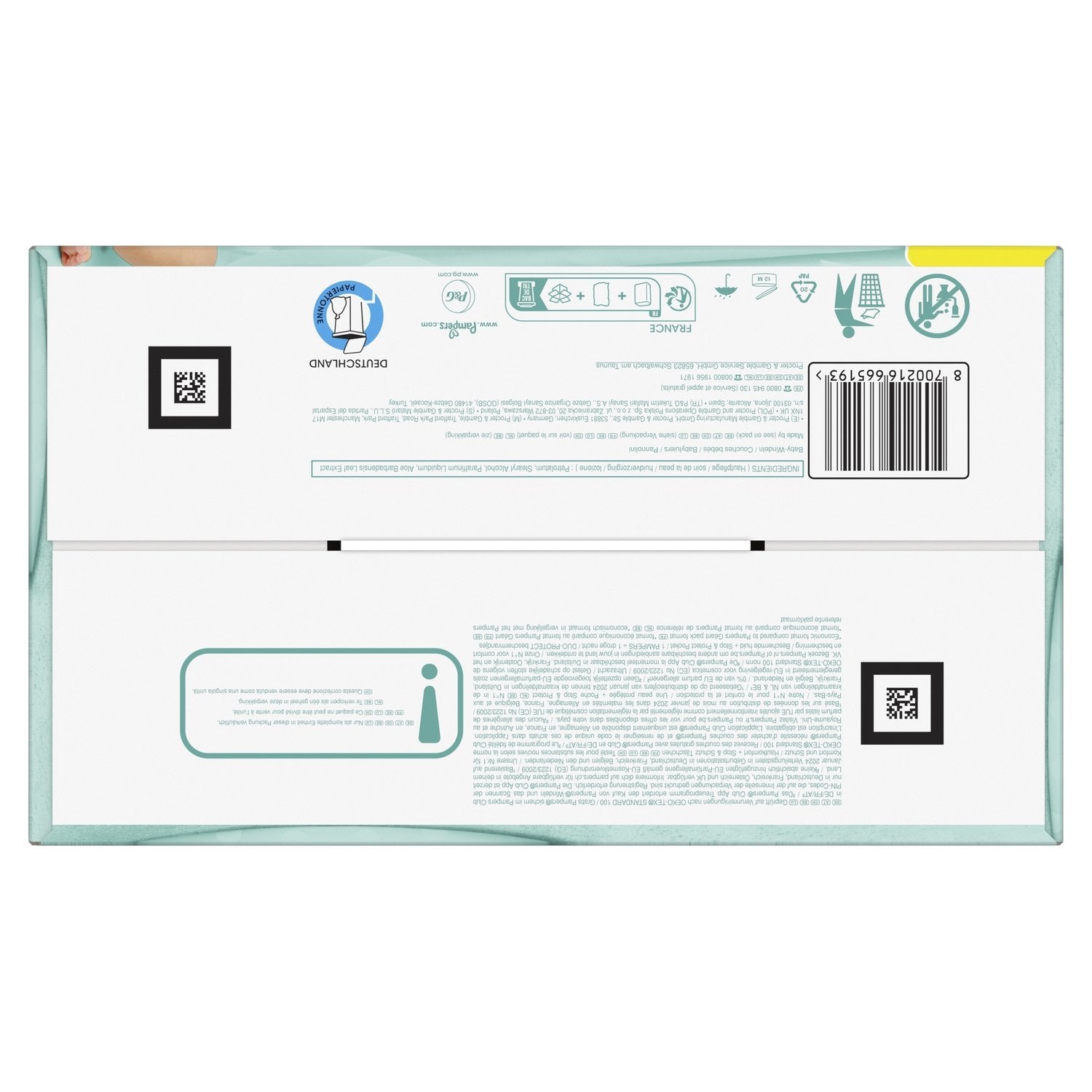 Double protection : L'ABSORPTION INSTANTANÉE protège la peau et la POCHE STOP & PROTECT protège contre les fuites ,Une peau protégée : Les couches Pampers les plus douces et confortables avec des millions de micro-alvéoles pour éloigner l'humidité de la peau , La couche Pampers N°1 pour la peau sensible de bébé, avec des matières micro-aérées ,Poche Stop & Protect unique aide à capturer les fuites à l'arrière de la couche ,Approuvée par les dermatologues de la Skin Health Alliance , Testée et certifiée Standard 100 par OEKO-TEX, À utiliser avec les lingettes pour bébé Pampers ,Le choix N°1 des maternités en France* (*Basé sur les données de distribution sur les tailles 0 & 1 au mois de janvier 2024 dans les maternités en France)