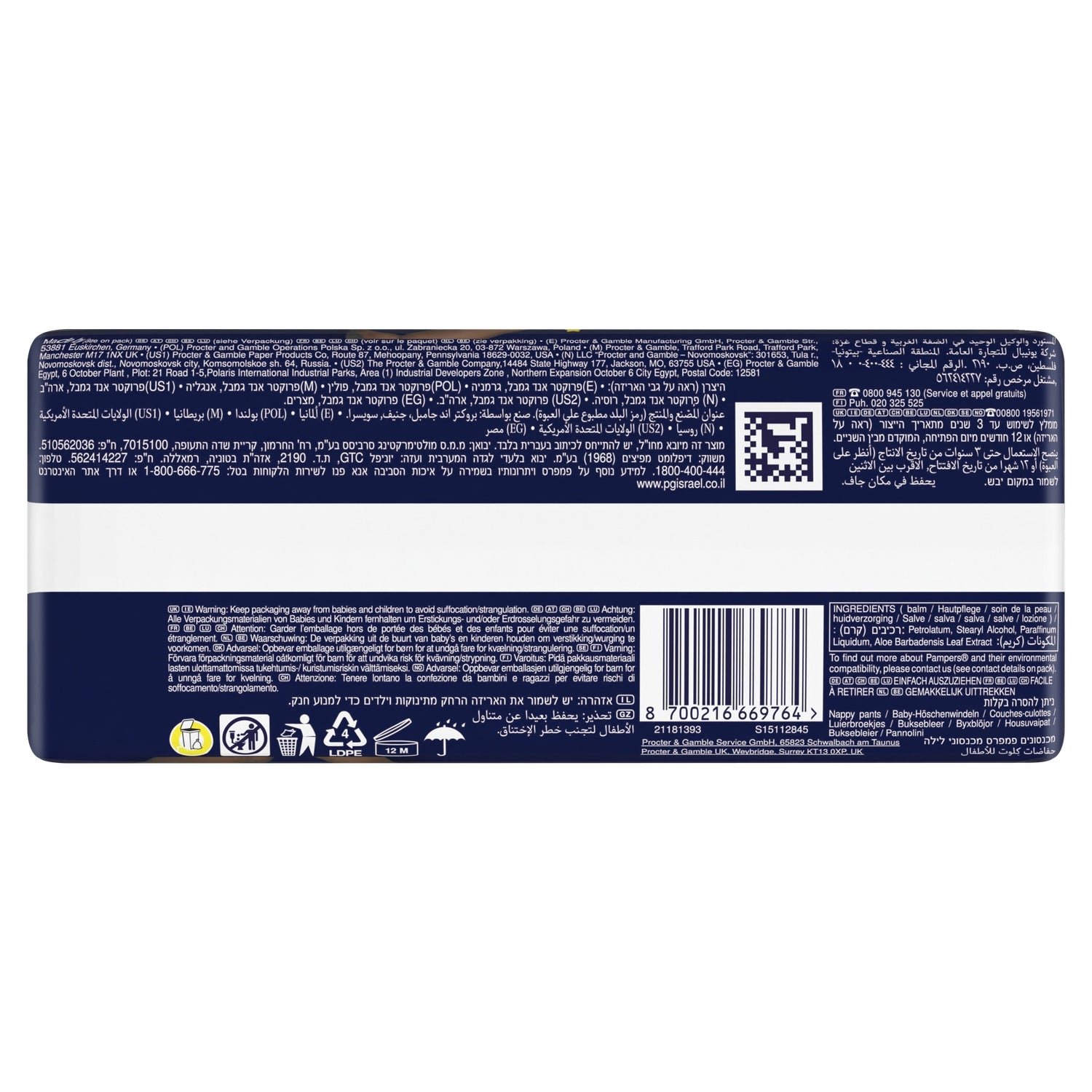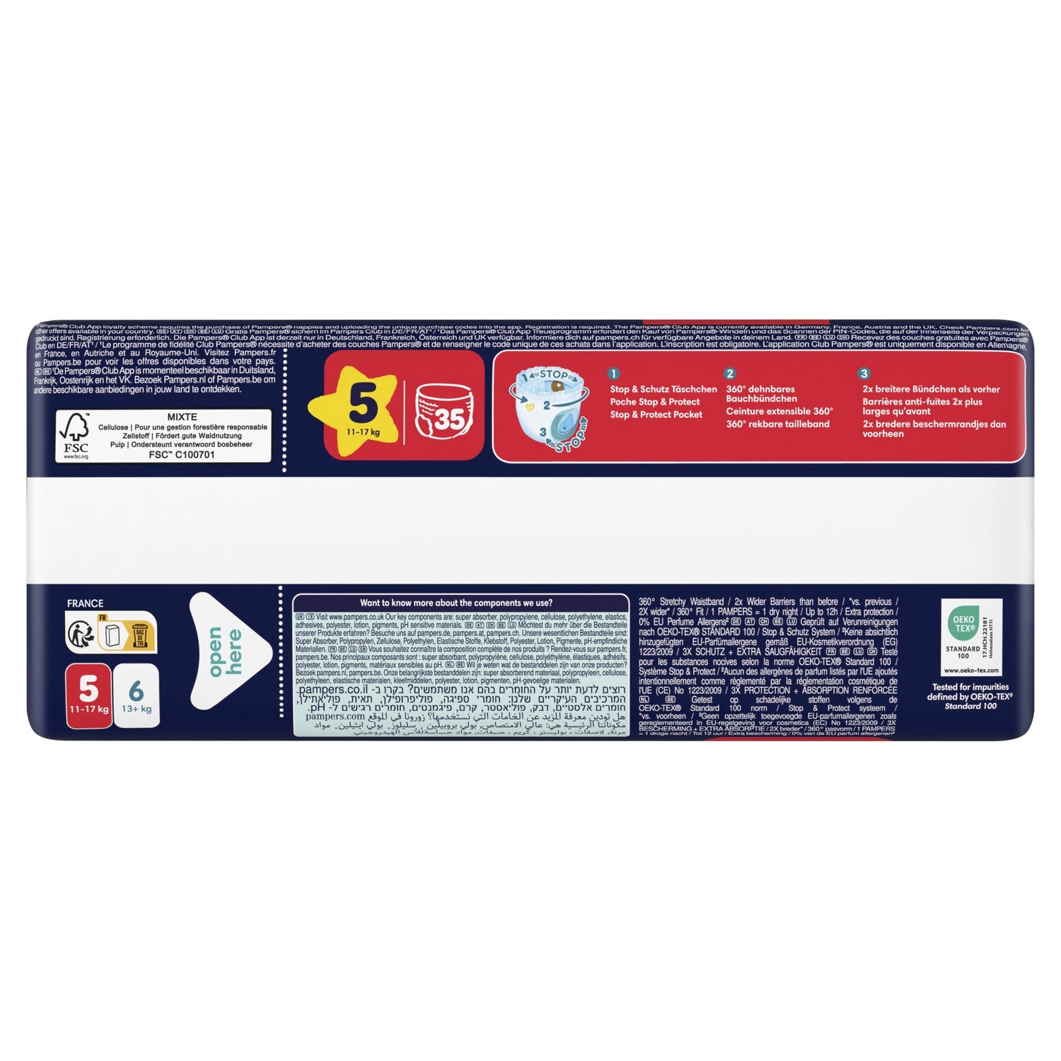 Offrez à votre bébé la meilleure protection Pampers pour la nuit avec les couches-culottes Pampers Night Pants : grâce à leur cœur absorbant elles sont le produit Pampers le plus absorbant pour une nuit jusqu'à 100% sans fuites. Elles sont également dotées d'une ceinture 360° qui s'adapte aux mouvements de votre bébé dans la nuit et d'une poche Stop & Protect qui aide à éviter les fuites à l'arrière de la couche-culotte. Comme toutes nos couches-culottes, les Pampers Night Pants sont faciles à changer : faciles à enfiler en un seul geste, faciles à retirer en déchirant les côtés, et faciles à jeter en les enroulant grâce à la bande adhésive. Comme pour vous, la sécurité de votre bébé est notre priorité : Les couches-culottes Pampers Night Pants sont approuvées dermatologiquement et contiennent 0% d'allergènes de parfum listés par l'UE (comme réglementé par la réglementation cosmétique de l'UE N° 1223/2009). Elles sont testées et certifiées Standard 100 par OEKO-TEX. Vous souhaitez en savoir plus sur la composition de nos produits ? Visitez pampers.fr