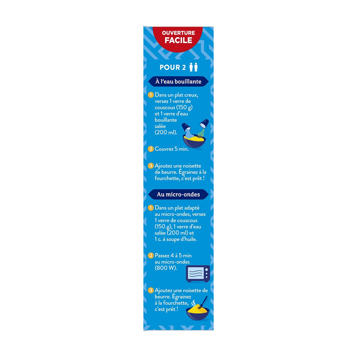 Ce grain moyen & moelleux s'égraine parfaitement grâce à la qualité du blé sélectionné. Il peut être réalisé au micro-ondes pour encore plus de rapidité.