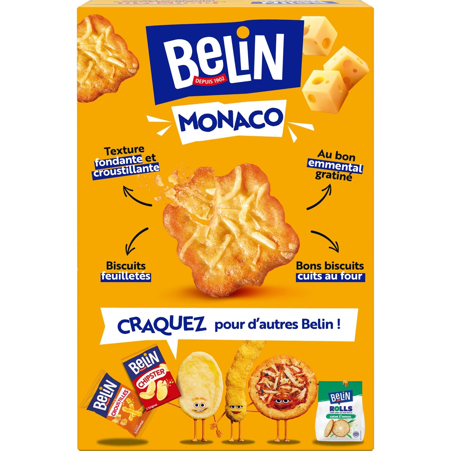 Biscuits salés Apéritif Belin crackers Monaco dans un maxi format 170G à partager,Ces biscuits fins, croquants et gratinés avec de l'emmental pour une touche 100 % gourmande sont à partager pour un apéritif festif et convivial, en famille ou entre amis.,Depuis plus de 120 ans, Belin fait craquer vos apéros grâce à son savoir-faire biscuitier historique. Des crackers aux biscuits soufflés, en passant par Croustilles Stars, leur goût singulier réjouit les papilles de toute la famille. ,Craquez pour un apéritif gourmand, croustillant et convivial avec Belin !,Découvrez notre large gamme de biscuits salés apéritifs signés Belin à la texture croquante