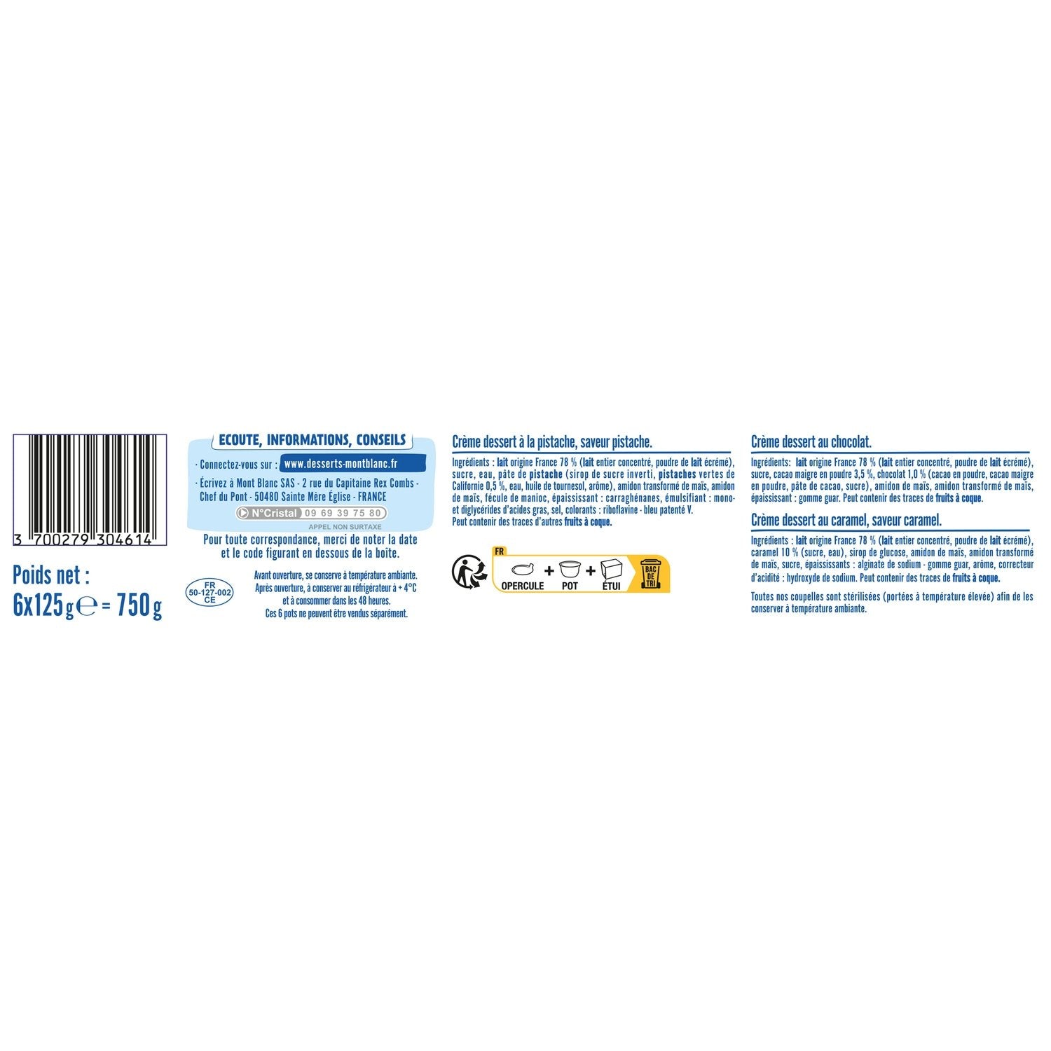 Crème Dessert Chocolat Caramel Pistache MONT BLANC