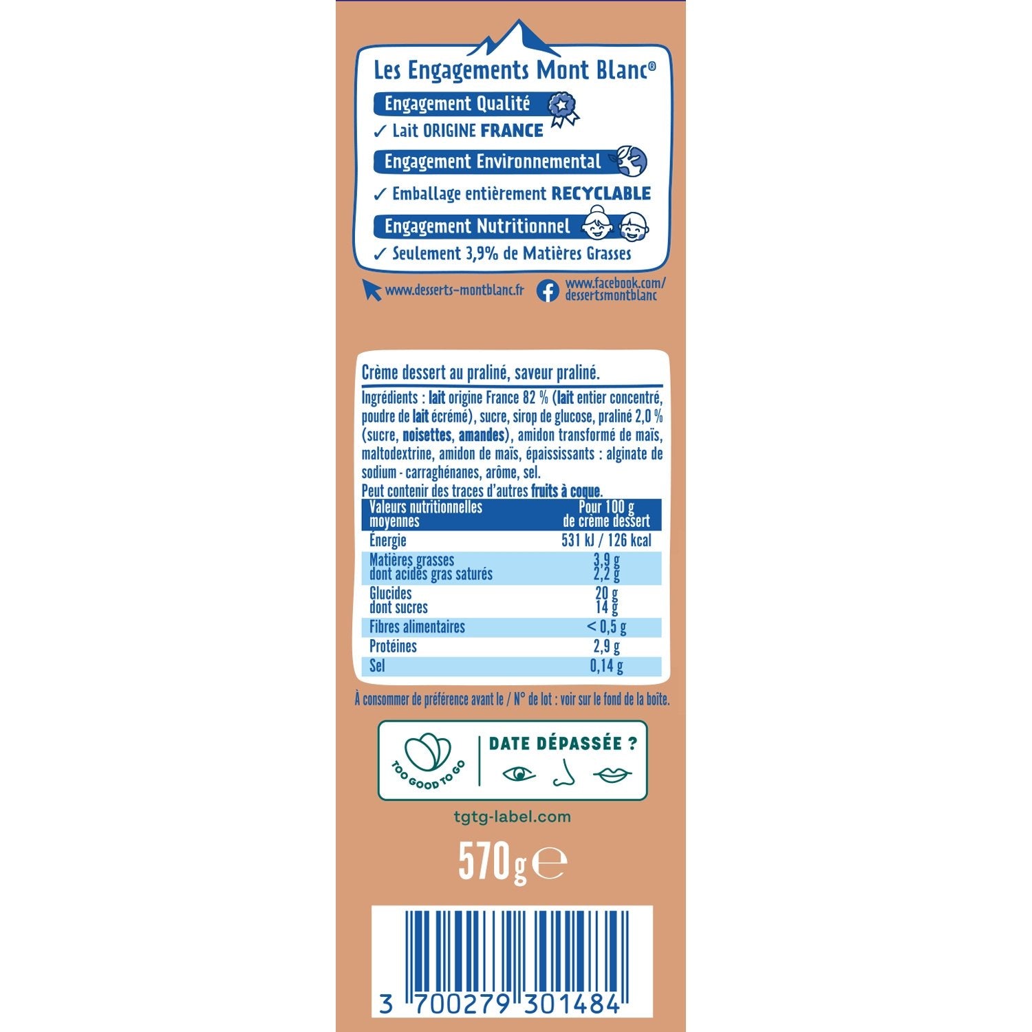 LAIT origine France 82 % (LAIT entier concentré, poudre de LAIT écrémé), sucre, sirop de glucose, praliné 2,0 % (sucre, NOISETTES, AMANDES), amidon transformé de maïs, maltodextrine, amidon de maïs, épaississants : alginate de sodium - carraghénanes, arôme, sel.
