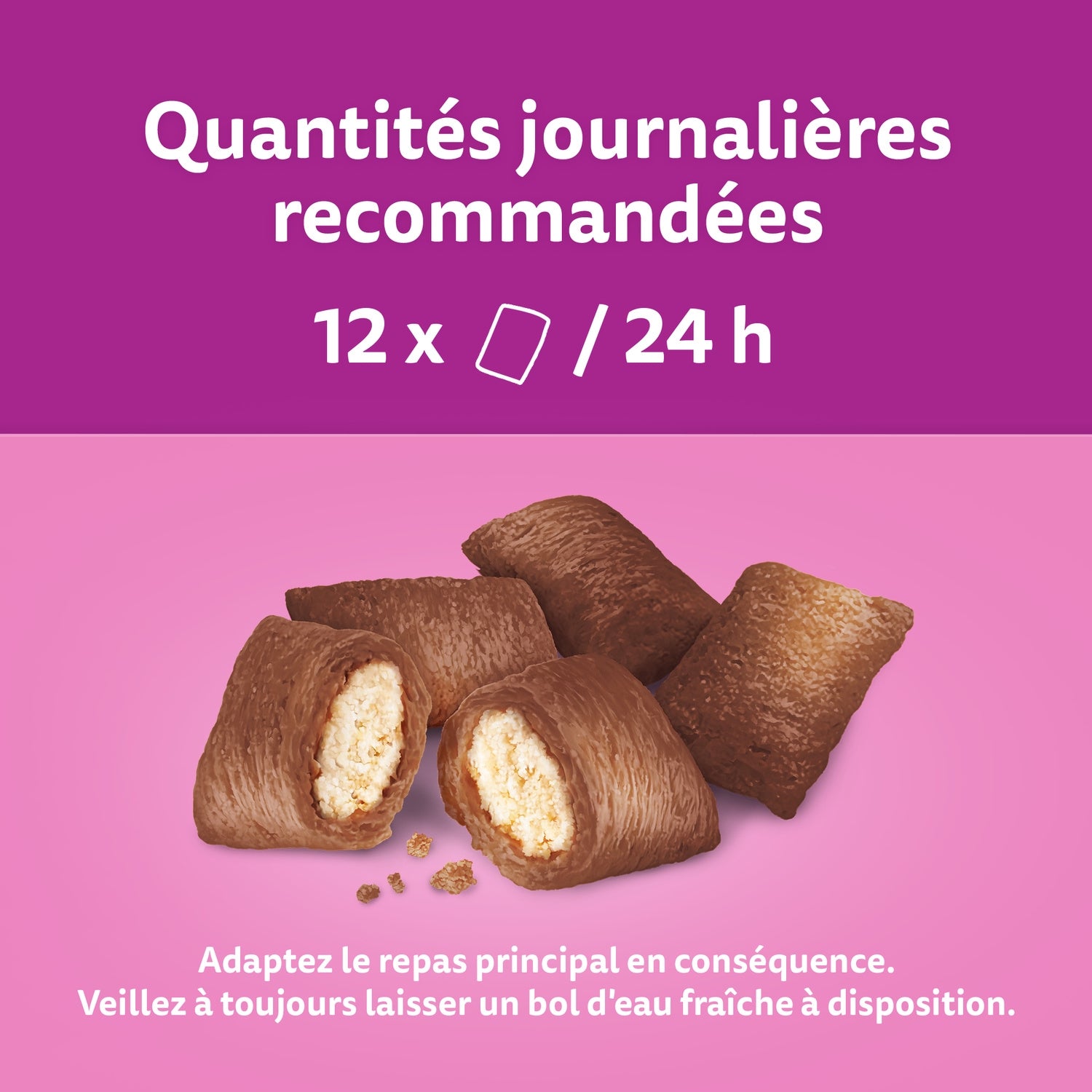 • Friandises pour chat adulte • Croquante à l'extérieur et tendre à l'intérieur • Seulement 2 kcal par friandise • Snack idéal pour partager un moment de complicité avec votre chat et nourrir sa curiosité • Nouvel emballage avec 60% de plastique en moins !