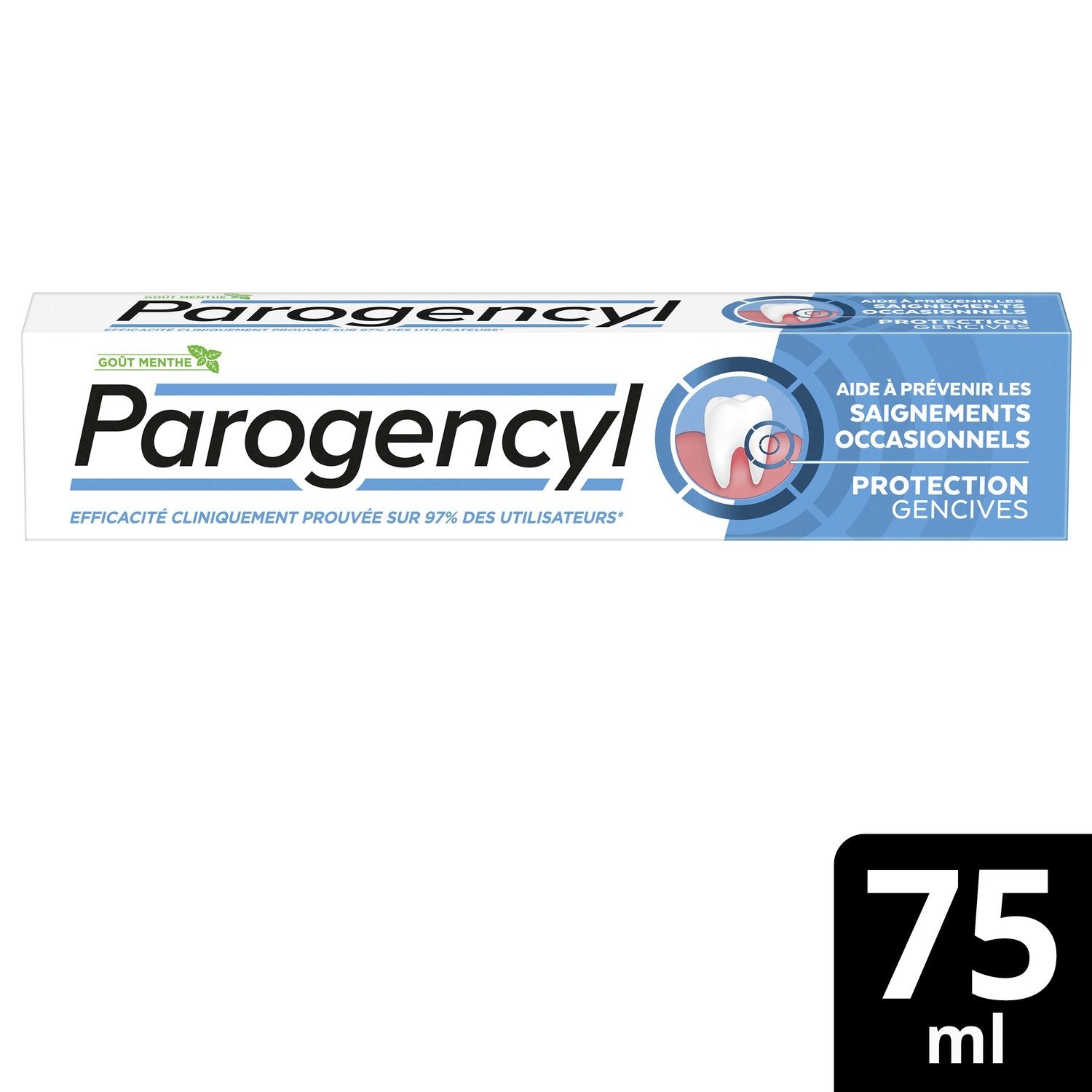 Dentifrice Parogencyl Protection Gencives.,Contribue à maintenir une bonne hygiène bucco-dentaire au quotidien.,Contribue à préserver des gencives saines.,Limite l'accumulation de la plaque dentaire,Favorise la prévention de l'inflammation gingivale occasionnelle.,Efficacité cliniquement prouvée sur 97% des utilisateurs** ** Étude clinique mesurant l'inflammation gingivale après 13 semaines comparé à un dentifrice fluoré standard.