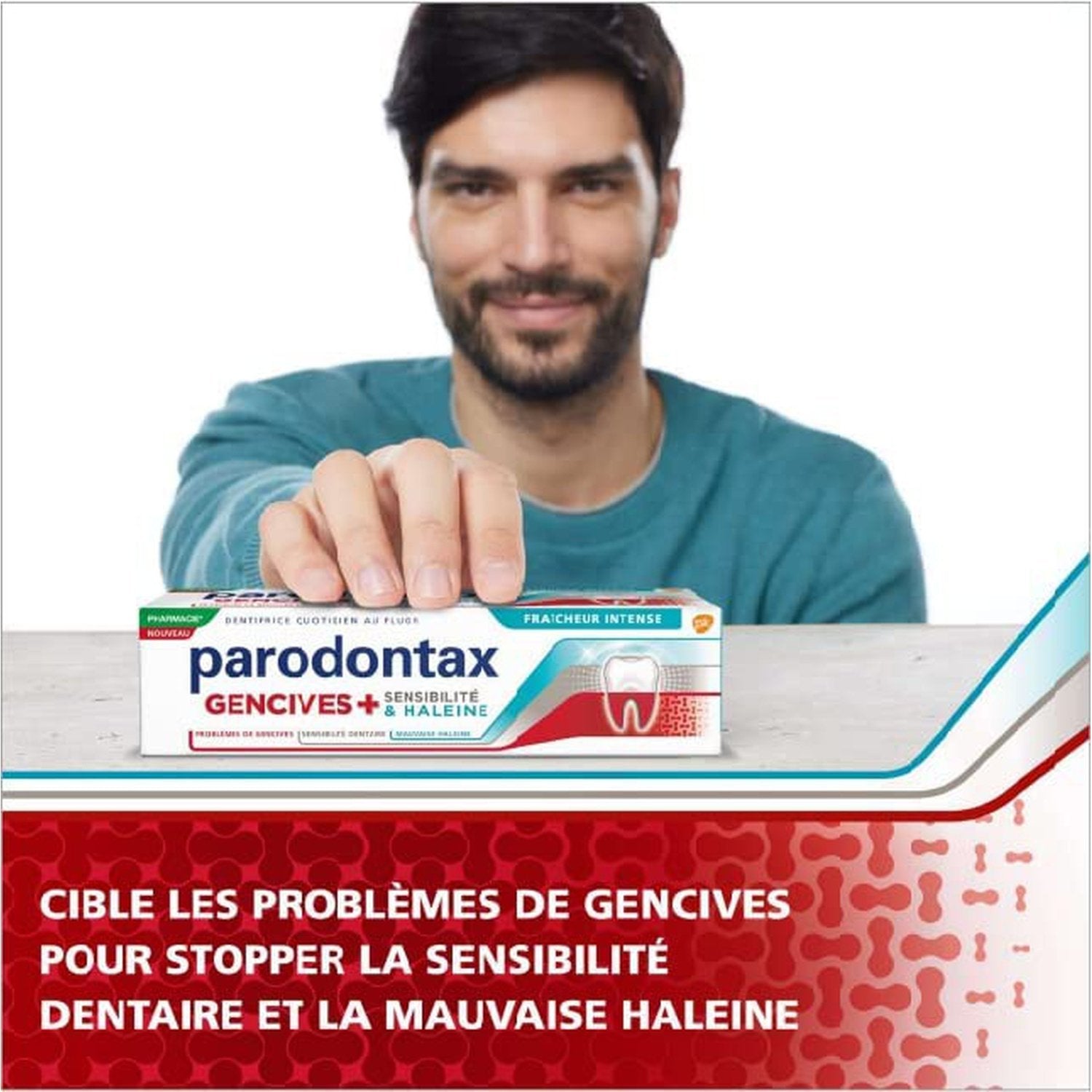 Nouvelle référence PARODONTAX avec 2 nouveaux ingrédients (Fluorure d'étain et Chlorure de Zinc): 3 bénéfices en 1: une formule unique au marché. Le Fluorure d'étain a une double action pour la santé des gencives et contre la sensibilité dentaire. Dentifrice quotidien – pâte blanche au gout frais de menthe identique aux dentifrices quotidiens du marché Cible les bactéries de la plaque dentaire logées entre les dents, à l'origine de l'inflammation et de la récession des gencives. Forme une barrière protectrice contre la sensibilité dentaire : Elle se manifeste quand les canaux à l'intérieur de la dentine sont exposés, à cause de la récession des gencives. L'étain permet une occlusion efficace de ces canaux dentinaires pour soulager la sensibilité due aux problèmes de gencives Le Chlorure de Zinc a une action ciblée sur la mauvaise haleine causée par l'accumulation de la plaque bactérienne Agit au-delà de la dissimulation des odeurs, en ciblant et neutralisant les bactéries de la plaque dentaire.