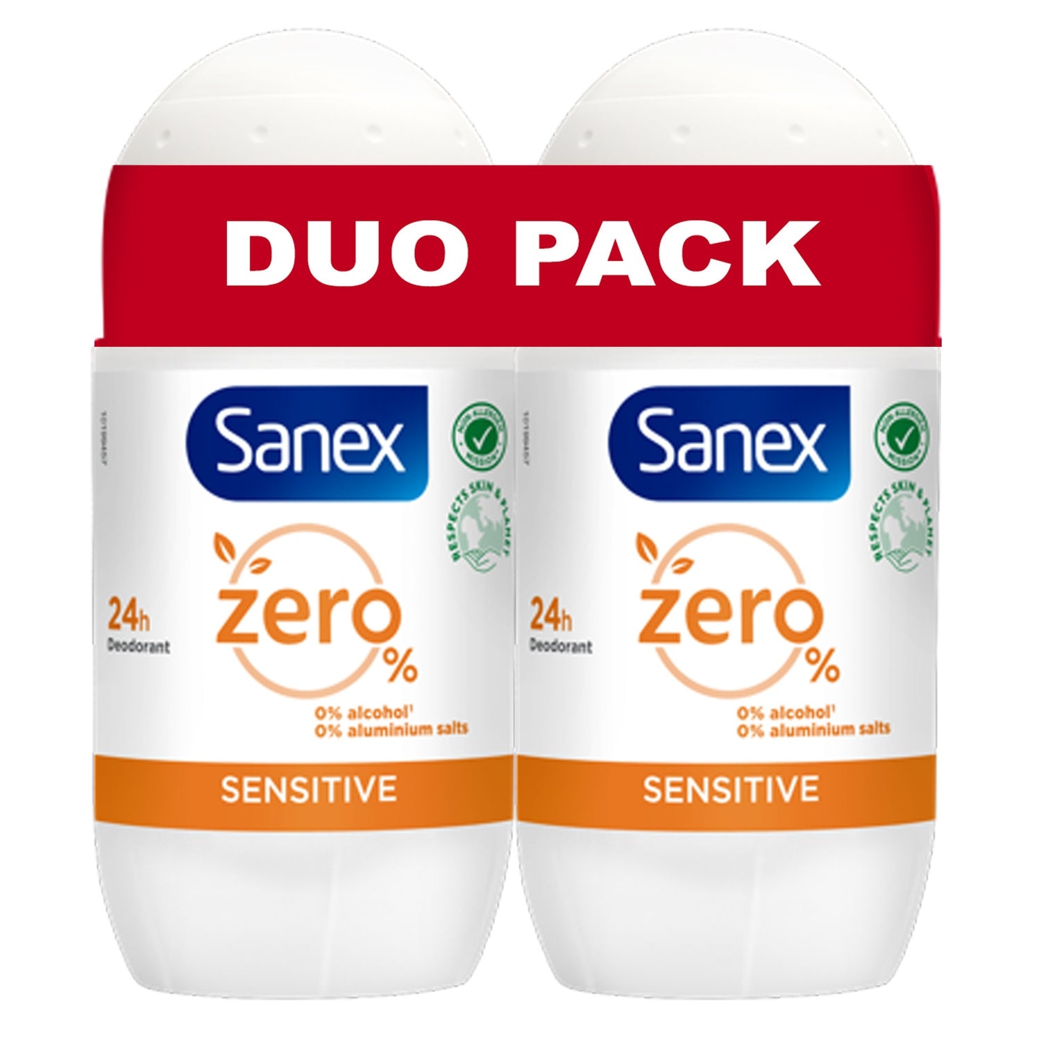 Déodorant sans sels d'aluminium Sanex Zéro 0% Peaux sensibles bille - 2x50ml