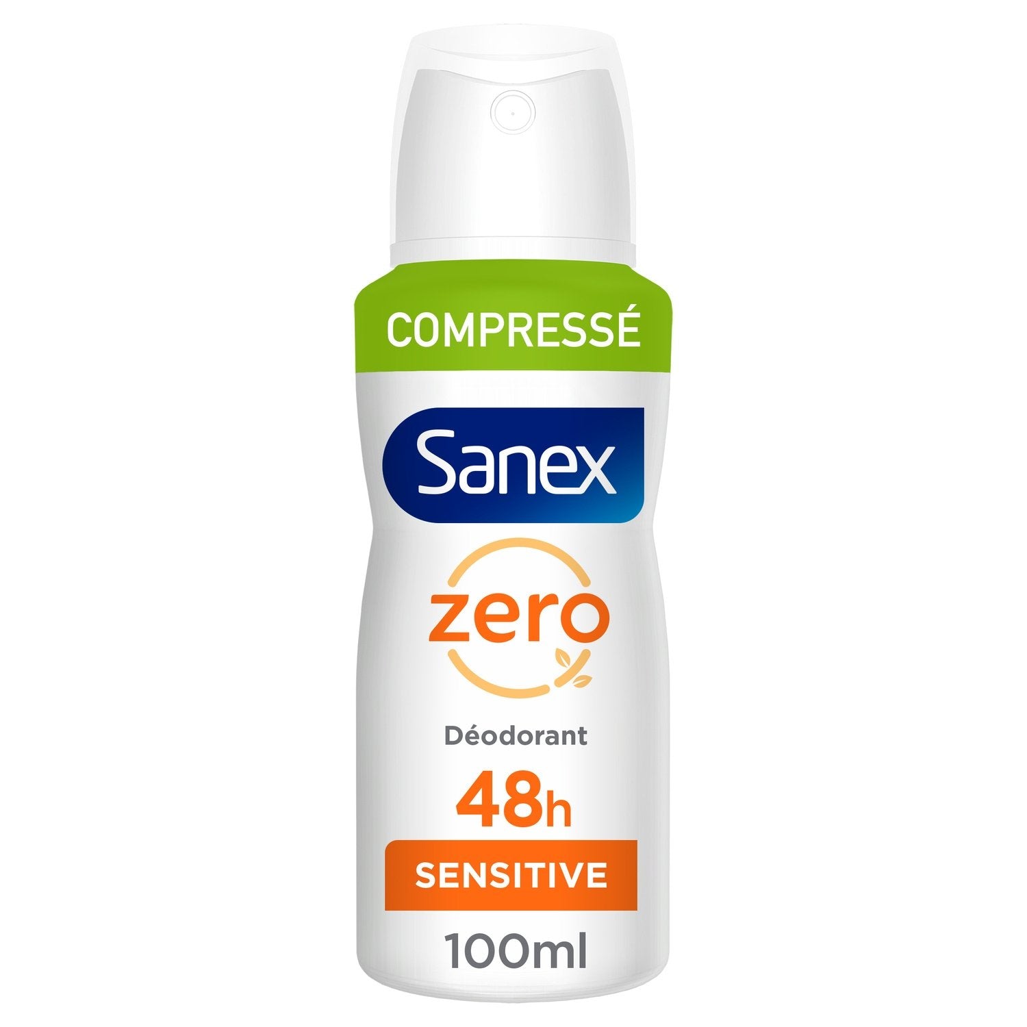 Le déodorant spray compressé Sanex Zero% Sensitive protège efficacement contre les odeurs pendant 48 heures grâce à sa triple action. Le déo spray est également formulé pour la tolérance de la peau.