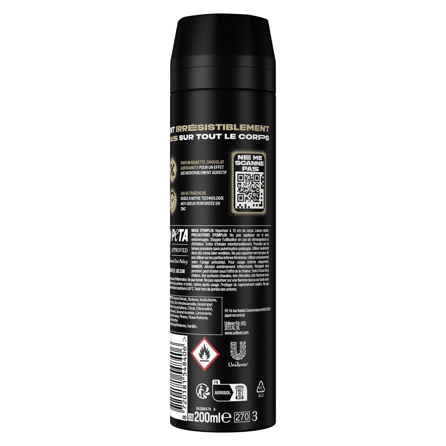 Sens irrésistiblement frais pour plus longtemps avec le nouveau déodorant homme AXE Gold Caramel Billionaire au format 200 ml.,Sa nouvelle technologie anti-odeur renforcée en actifs de zinc et brevetée rend ce déodorant imbattable contre les odeurs.,Avec son parfum de caramel gourmand incroyablement addictif, ce déodorant homme offre maintenant 48h de parfum et de fraîcheur.,Secoue, tourne et vaporise le déodorant à 15 cm du corps ou des aisselles.,L'emballage de ce déodorant pour homme AXE est majoritairement recyclable et contient au moins 25 % d'aluminium recyclé. Dépose-moi dans le bac de tri !,La nouvelle formule de ce déodorant est certifiée Peta, ce qui signifie qu'aucun test n'est fait sur les animaux dans le monde entier.