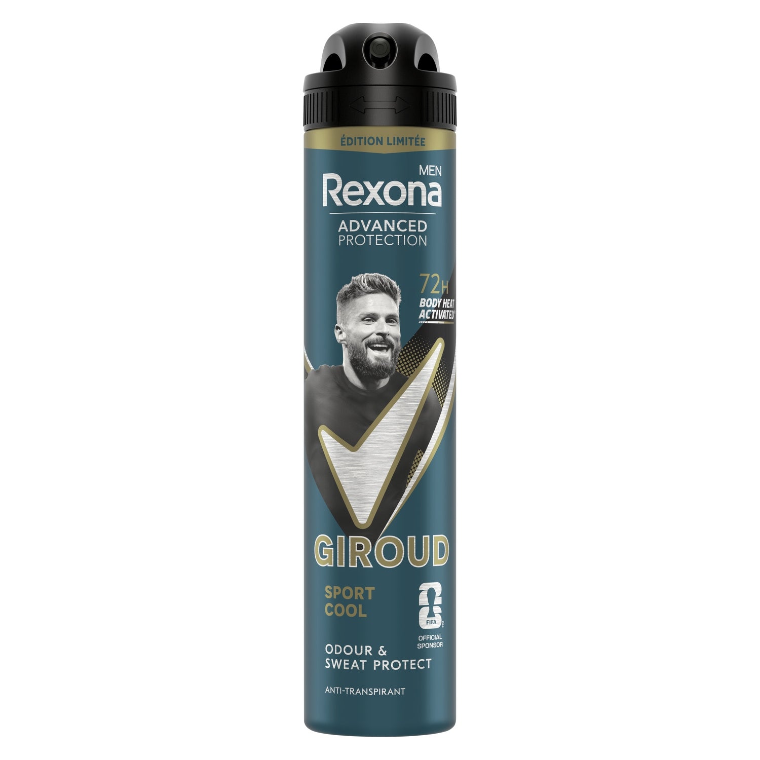 Restez frais à chacun de vos mouvements avec l'anti-transpirant homme spray Rexona Men Sport Cool édition limitée Olivier Giroud, au format spray de 200 ml.,Grâce à sa technologie anti-transpirante brevetée, la formule unique de Rexona Men Sport Cool offre 72 h de protection contre l'humidité et les mauvaises odeurs.,Son format spray permet de diffuser le produit sur votre peau et offre un séchage rapide, laissant sur les aisselles un parfum frais et masculin pour une fraîcheur non-stop.,Avec les anti-transpirants Rexona Men, bougez en toute confiance ! 72 h anti-humidité et anti-odeurs non-stop.,L'emballage de ce déodorant spray anti-transpirant est majoritairement recyclable. Cet anti-transpirant est fabriqué dans une usine utilisant 100 % d'électricité renouvelable.,Jour après jour, les déodorants Rexona Men vous protègent et ne vous laisseront pas tomber.