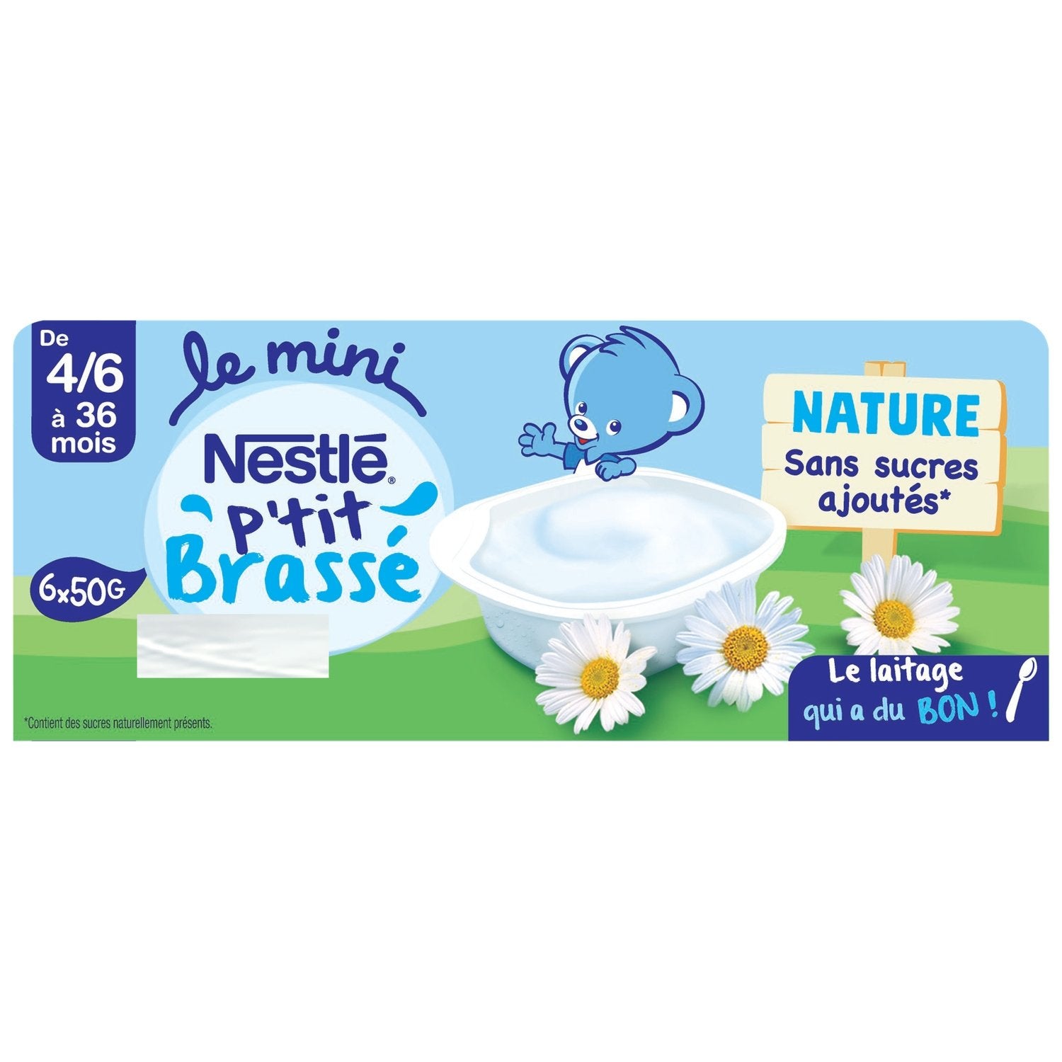 P'TIT BRASSE MINI Nature Sans Sucres Ajoutés*, le laitage qui a du bon conçu exprès pour bébé**, sous un format adapté au début de la diversification***. Découvrez ce délicieux laitage produit à Arches dans les Vosges avec du lait français. Pratique, il s'emporte partout grâce à notre procédé de fabrication spécifique qui permet une conservation hors du frigo. *Contient des sucres naturellement présents. **Conformément à la réglementation des aliments pour bébés. ***Fiez-vous à l'appétit de votre bébé.