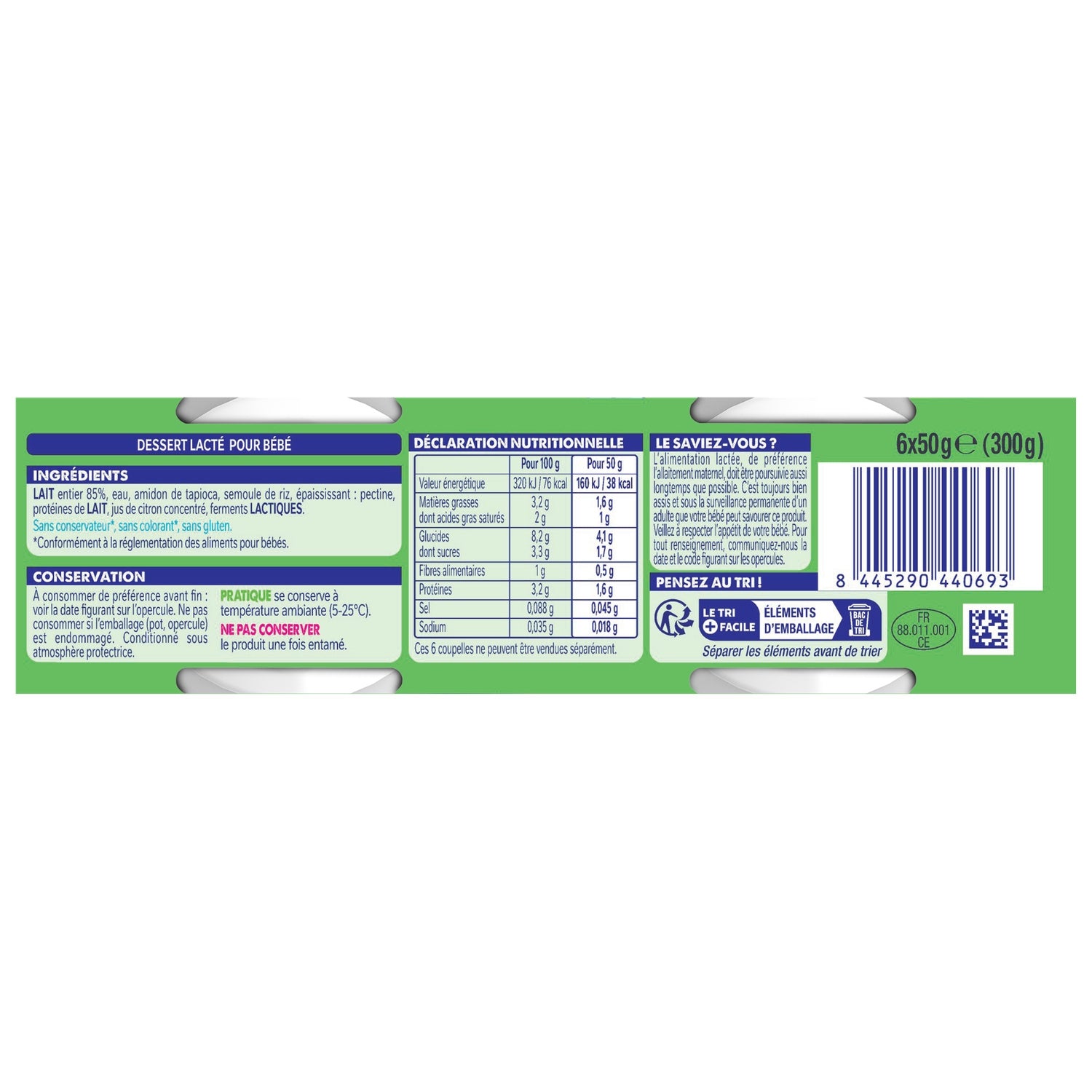 Ingrédients: LAIT entier 85%, eau, amidon de tapioca, semoule de riz, épaississant : pectine, protéines de LAIT, jus de citron concentré, ferments LACTIQUES.