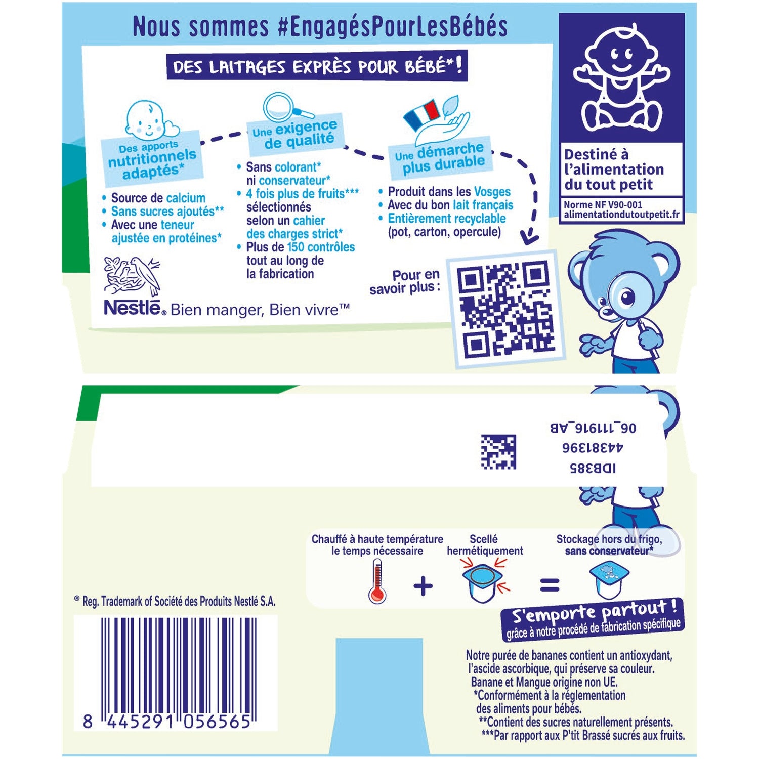 Dessert Bébé Dés 6 Mois, P'tit Brassé Banane Mangue Sans Sucres Ajoutés NESTLE