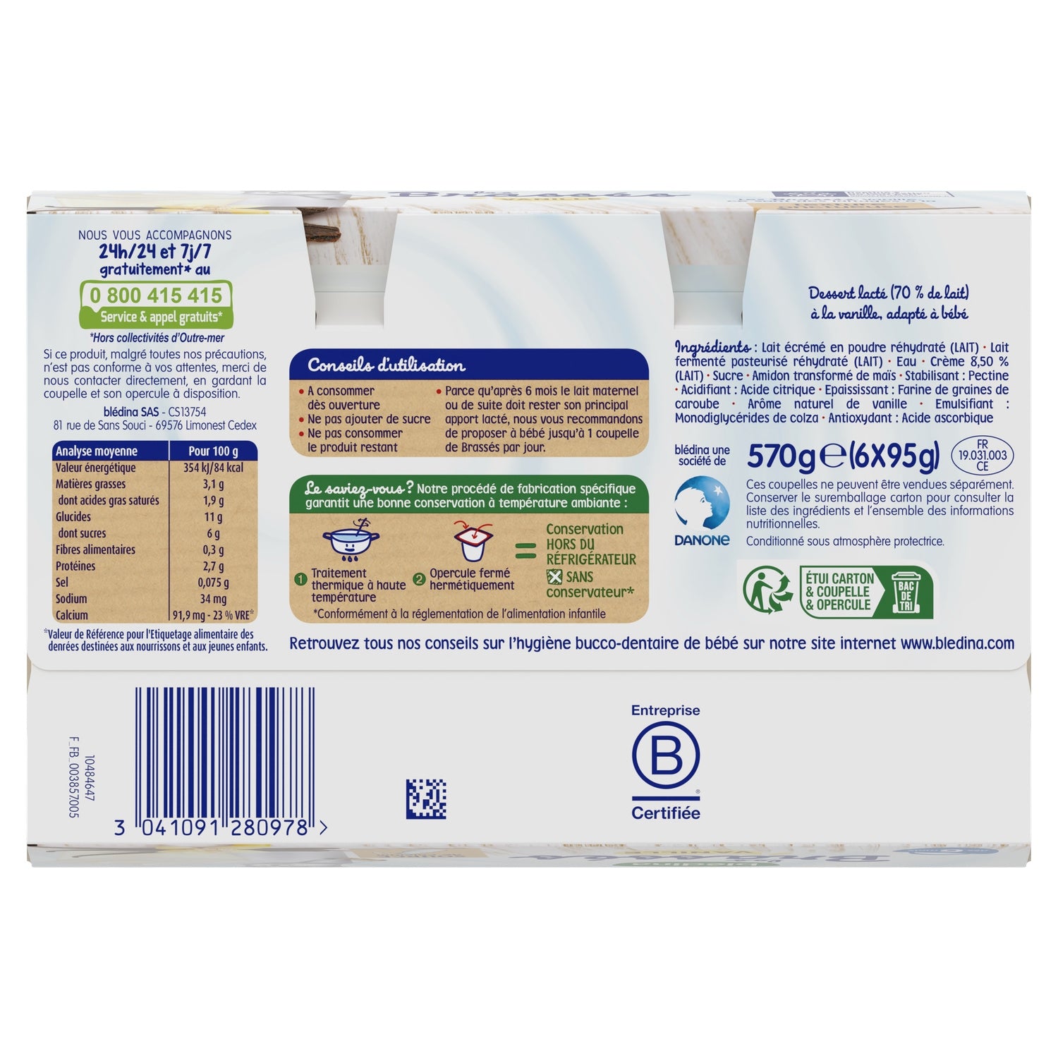 Dessert lacté (70 % de lait) à la vanille, adapté à bébé