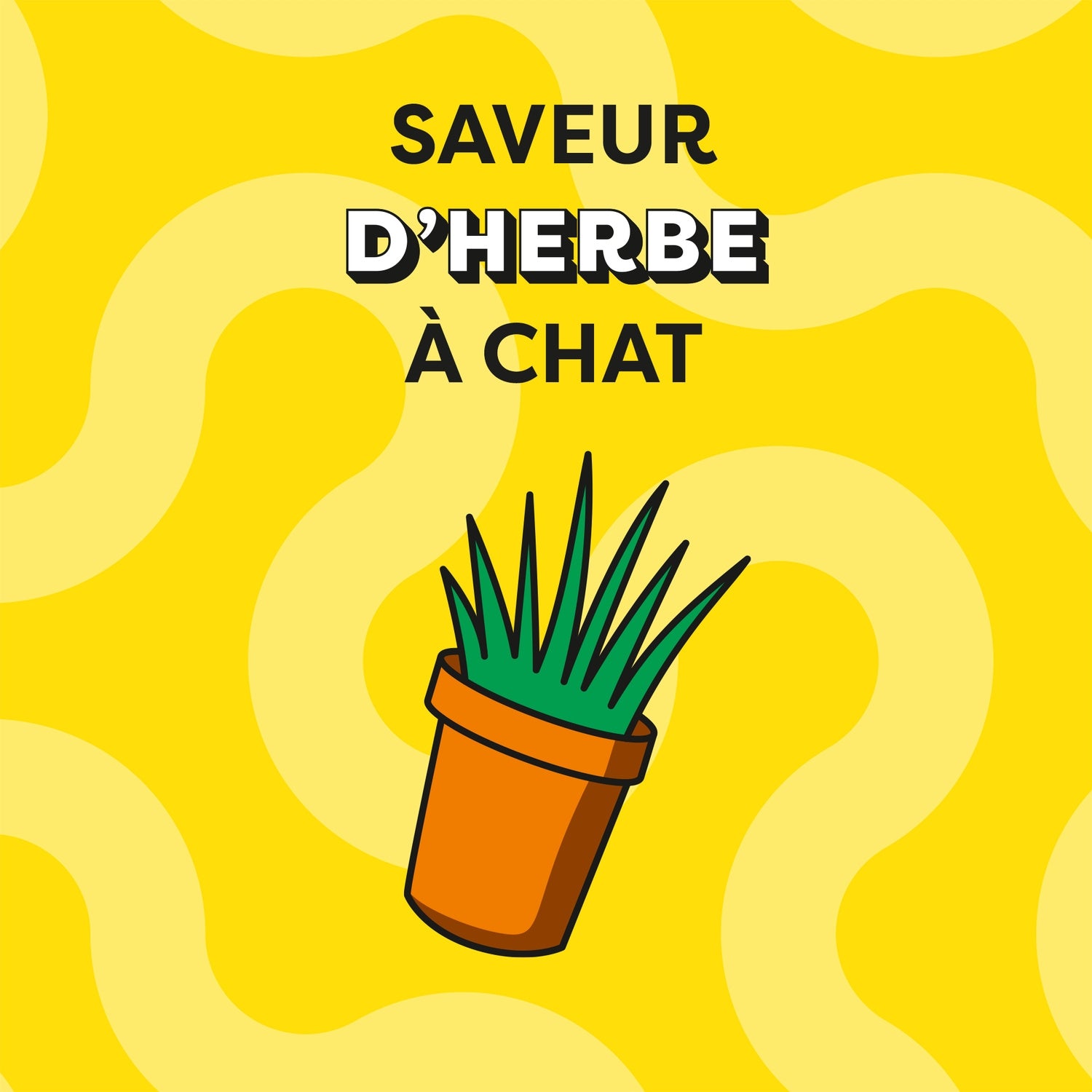 Délicieusement craquantes à l'extérieur, tendres à l'intérieur. LES CHATS NE PEUVENT PAS RÉSISTER™ aux friandises CATISFACTIONS™. Non, nous n'utilisons pas d'ingrédient secret ni de magie pour les rendre si délicieuses, mais tout plein d'ingrédients que les chats adorent. Secouez le sachet et vous verrez votre chat accourir ! Les chats sont difficiles à satisfaire. Mais quiconque a un chat connaît le pouvoir de l'herbe à chat... Les chats en deviennent fous ! Désormais, leurs friandises préférées à double texture sont également disponibles en saveur Herbe à Chat. Miaoum... miam !