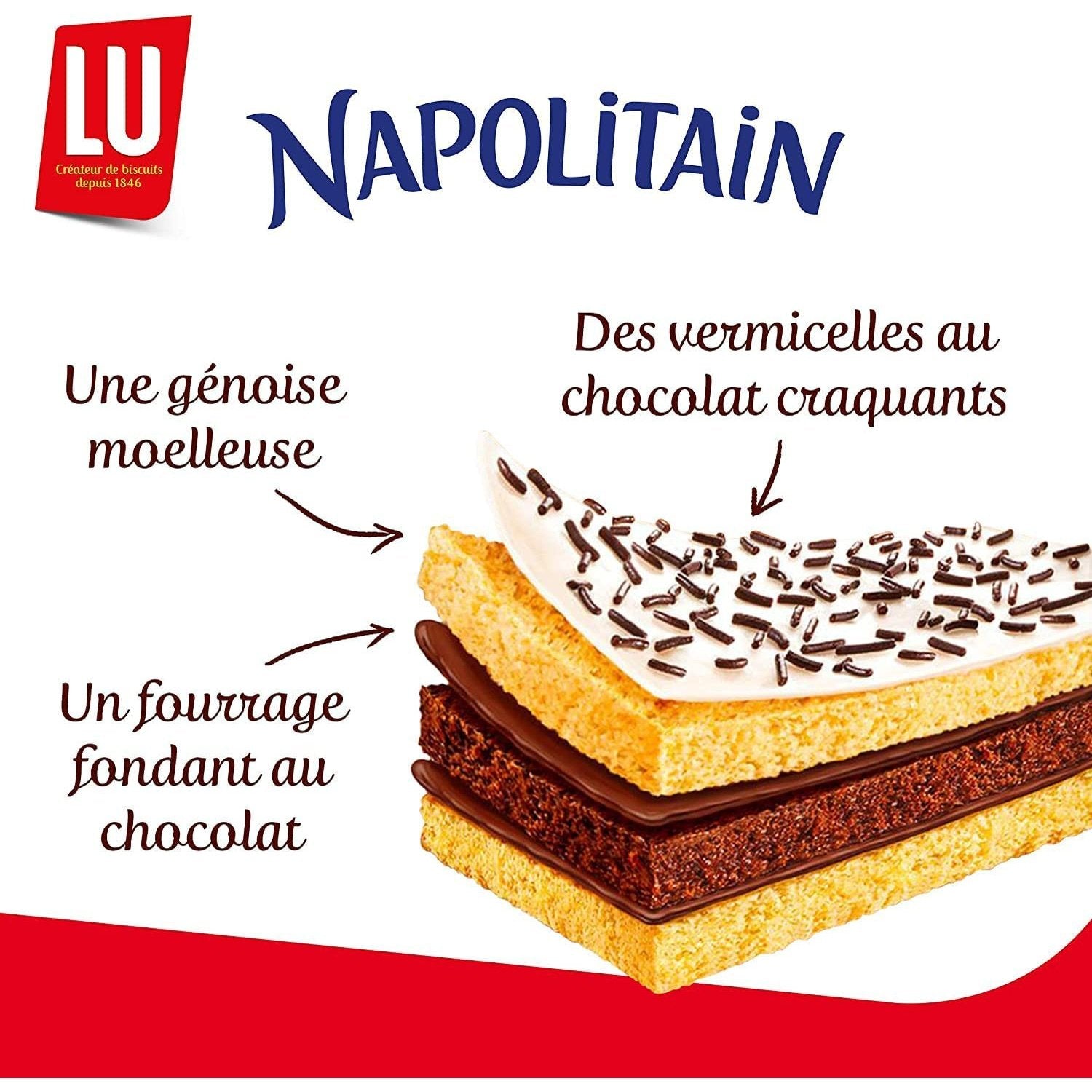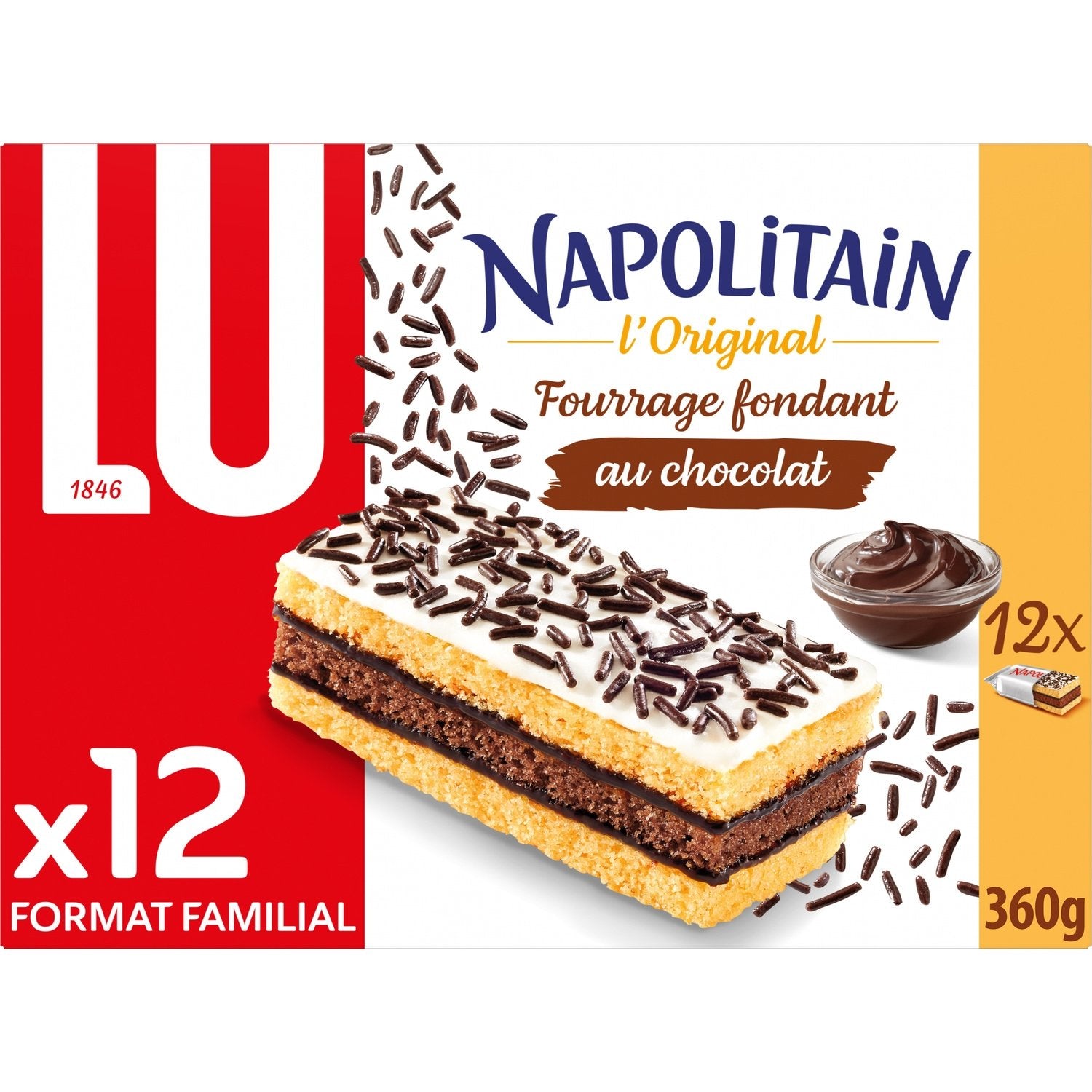 Napolitain Original, des génoises moelleuses et un fourrage fondant au chocolat, le tout recouvert de vermicelles craquants ! 12 sachets individuels pour un transport facile.