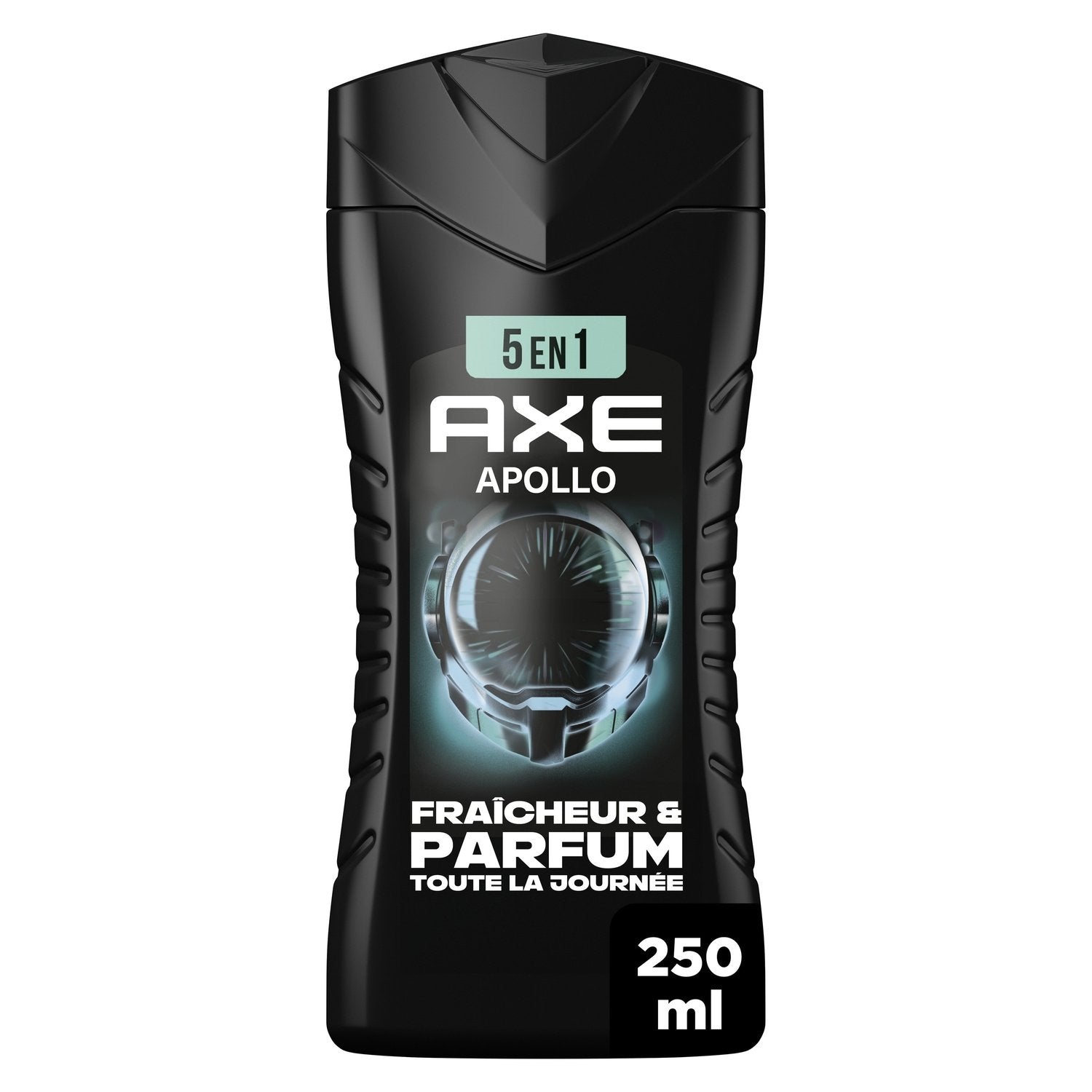 Sens-toi propre et frais, et sens irrésistiblement bon pour plus longtemps avec le nouveau gel douche homme 5-en-1 AXE Apollo au format 250 ml.,Grâce à notre incroyable formule qui élimine les bactéries responsables des mauvaises odeurs, ce gel douche au pH neutre offre fraîcheur et parfum toute la journée, tout en respectant la peau.,Testé dermatologiquement, ce gel douche contient 87 % d'ingrédients d'origine naturelle et t'assure 24 h d'hydratation. Il libère un parfum de sauge et de bois de cèdre pour un effet addictif.,Verse le gel douche dans le creux de ta main. Fais-le mousser sur ton corps. Rince. Tu es propre et sens irrésistiblement bon !,La bouteille de ce gel douche AXE est 100 % en plastique recyclé et entièrement recyclable. Dépose-moi dans le bac de tri !,La nouvelle formule de ce gel douche est certifiée Peta, ce qui signifie qu'aucun test n'est fait sur les animaux dans le monde entier.