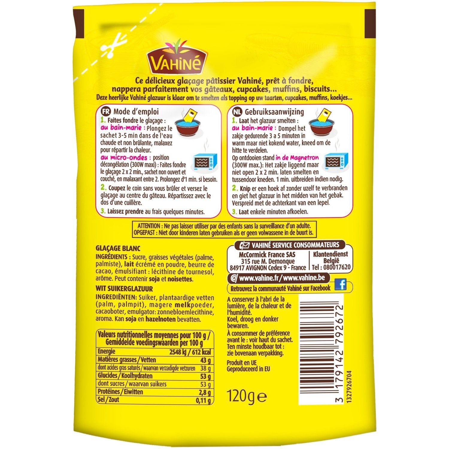 Le glaçage blanc Vahiné prêt à fondre a une formule sans colorant ni conservateur. Il apportera un véritable fini pâtissier à vos gâteaux, biscuits, muffins, mille feuilles et autres desserts !