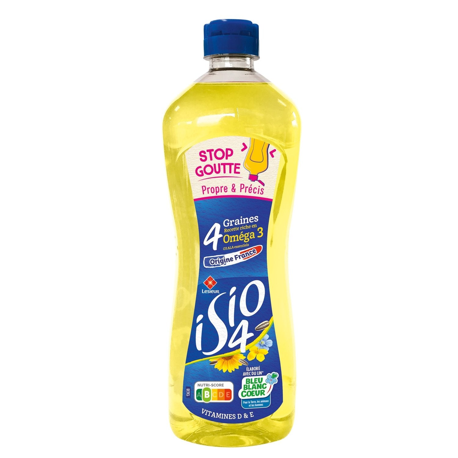 'ISIO 4, la combinaison de 4 huiles de graines (tournesol, colza, Oléisol® et lin) origine France, qui vous apporte des nutriments essentiels au quotidien (Oméga 3 ALA). Bouteille 100% recyclée recyclable. Huile sans résidu de pesticides**. Usages : assaisonement, cuisson, friture***. * 5% d'huile de lin non française ** Teneurs inférieurs aux limites de quantification de 0,01mg/kg sur une liste de 200 pesticides analysés sur les huiles par un laboratoire indépendant, accrédité COFRAC. *** Température maximale conseillée: 175°