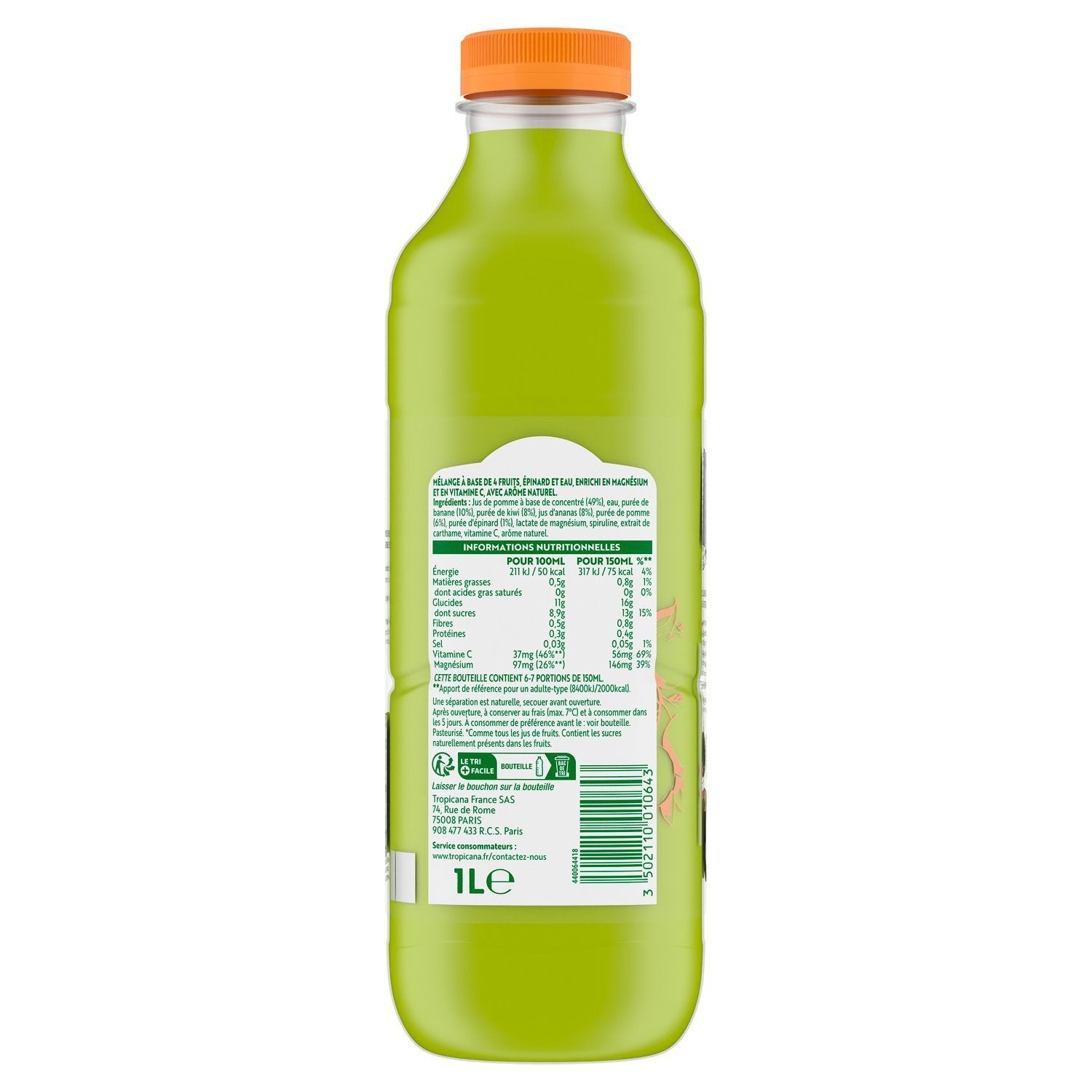Et si nous vous révélions enfin le secret de notre si bon jus ? Qui aurait pu imaginer que le kiwi s'associerait aussi bien au goût de l'épinard ? En imaginant cette création originale, nous avons ainsi joué sur des associations audacieuses pour maintenir votre système immunitaire sans pour autant rogner sur votre plaisir¹. ¹Faites le plein de vitalité et boostez votre journée avec ce jus-là, enrichi en : - Vitamine C : contribue au fonctionnement normal du système immunitaire. - Magnésium : contribue à réduire la fatigue.