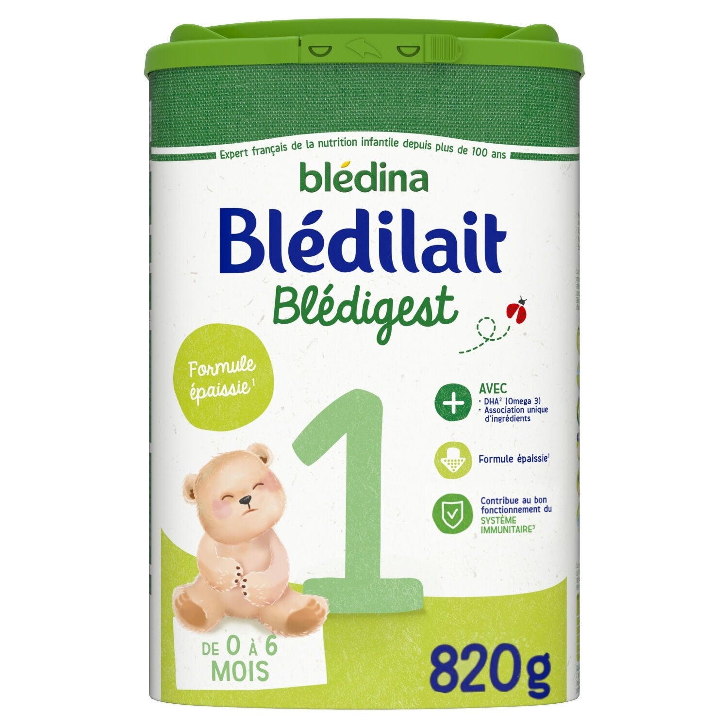 Nos experts en nutrition infantile ont développé BLEDIGEST 1 une formule infantile épaissie * avec tout ce dont bébé a besoin ! (Conformément à la réglementation, comme toutes les préparations pour nourrissons.) Cette formule infantile contient une association unique d'ingrédients et notamment du DHA (Omega 3). Conformément à la réglementation, comme toutes les préparations pour nourrissons. *peut nécessiter l'utilisation d'une tétine adaptée