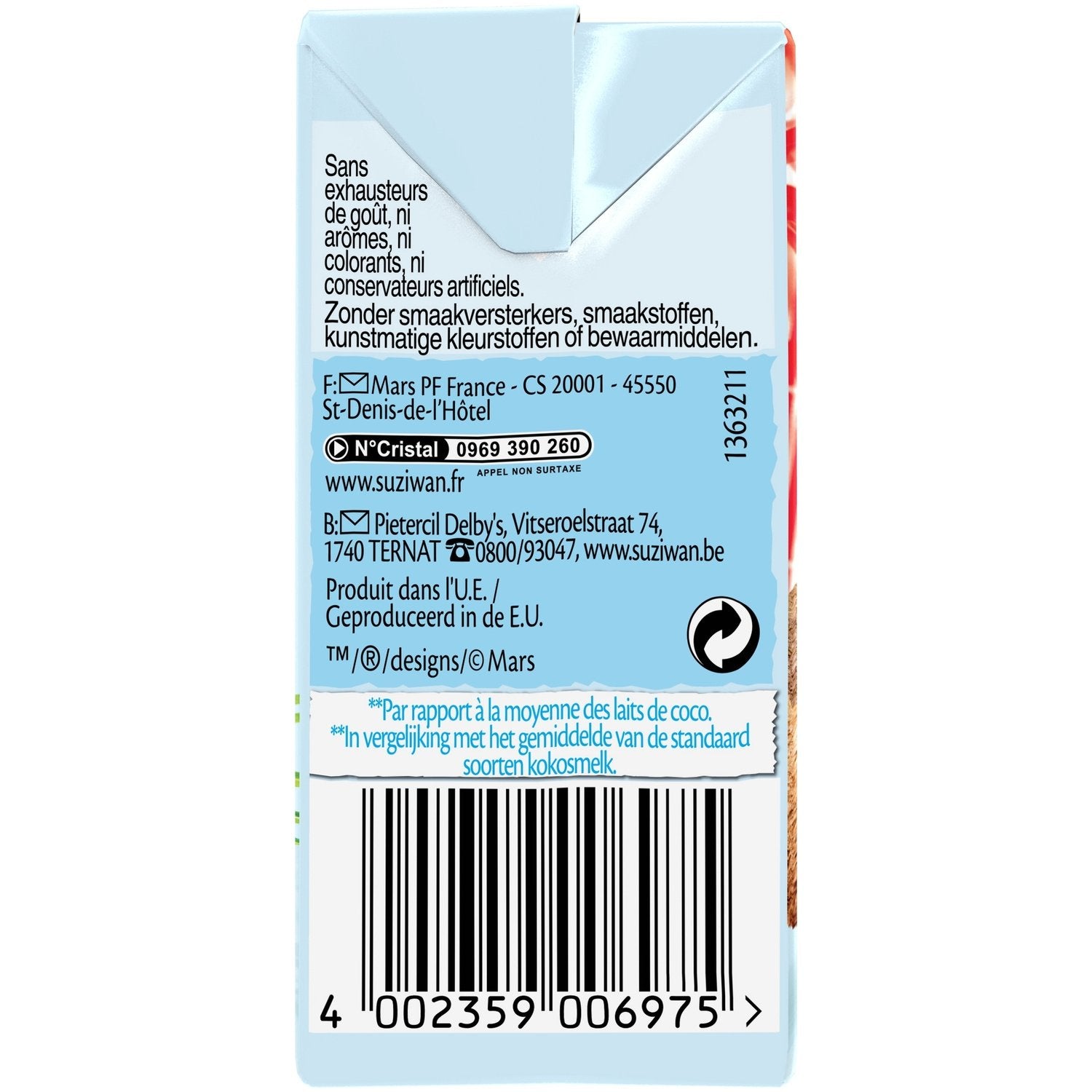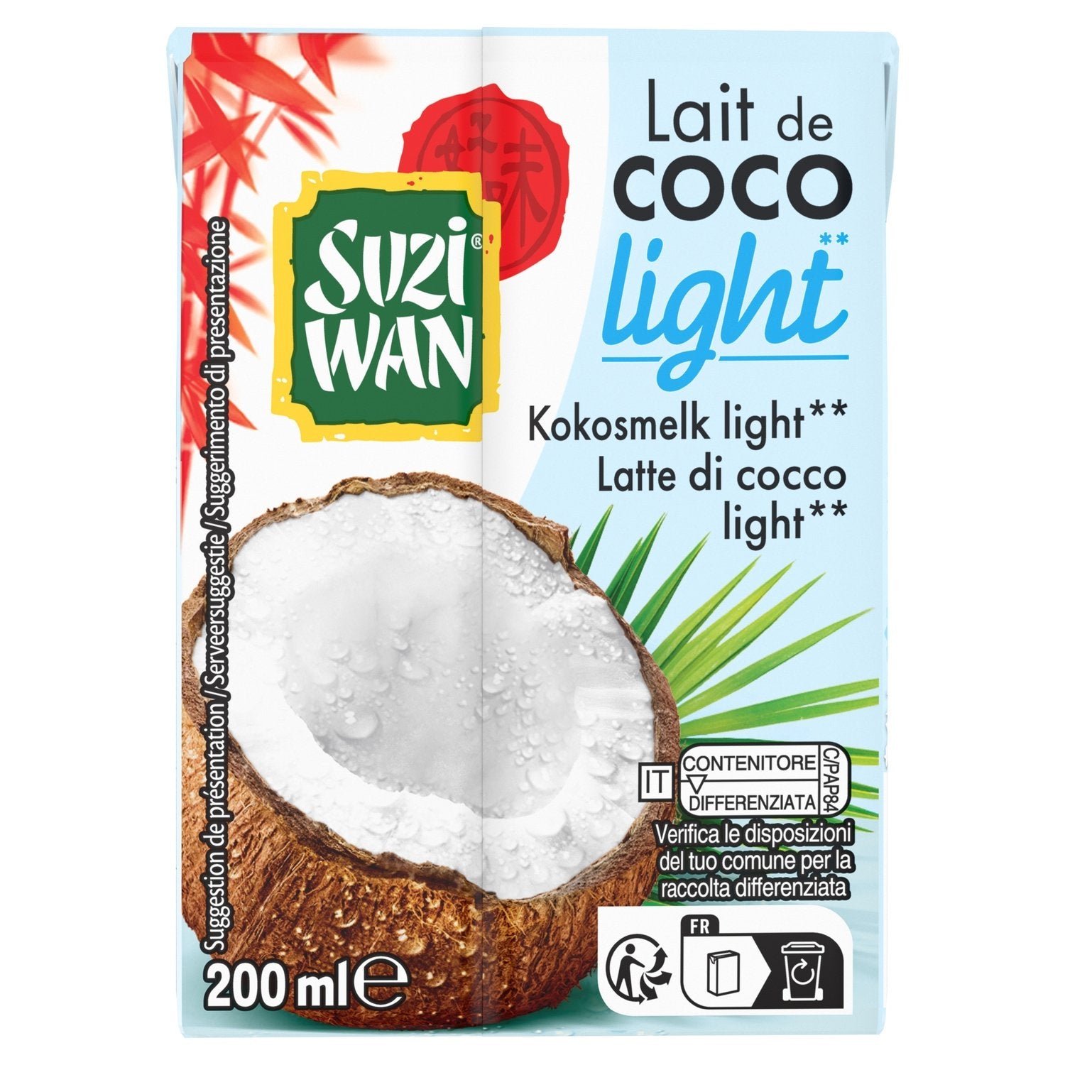 Le lait de coco Light Suzi Wan® est idéal pour donner une touche d'Asie à vos recettes du quotidien, aussi bien salées que sucrées. Allégé en matière grasse, c'est une alternative végétale aux produits laitiers. Utilisez-le pour vos recettes asiatiques de curry et soupes mais aussi pour twister vos plats plus traditionels et vos desserts. Nutriscore C Note Yuka : 57/100