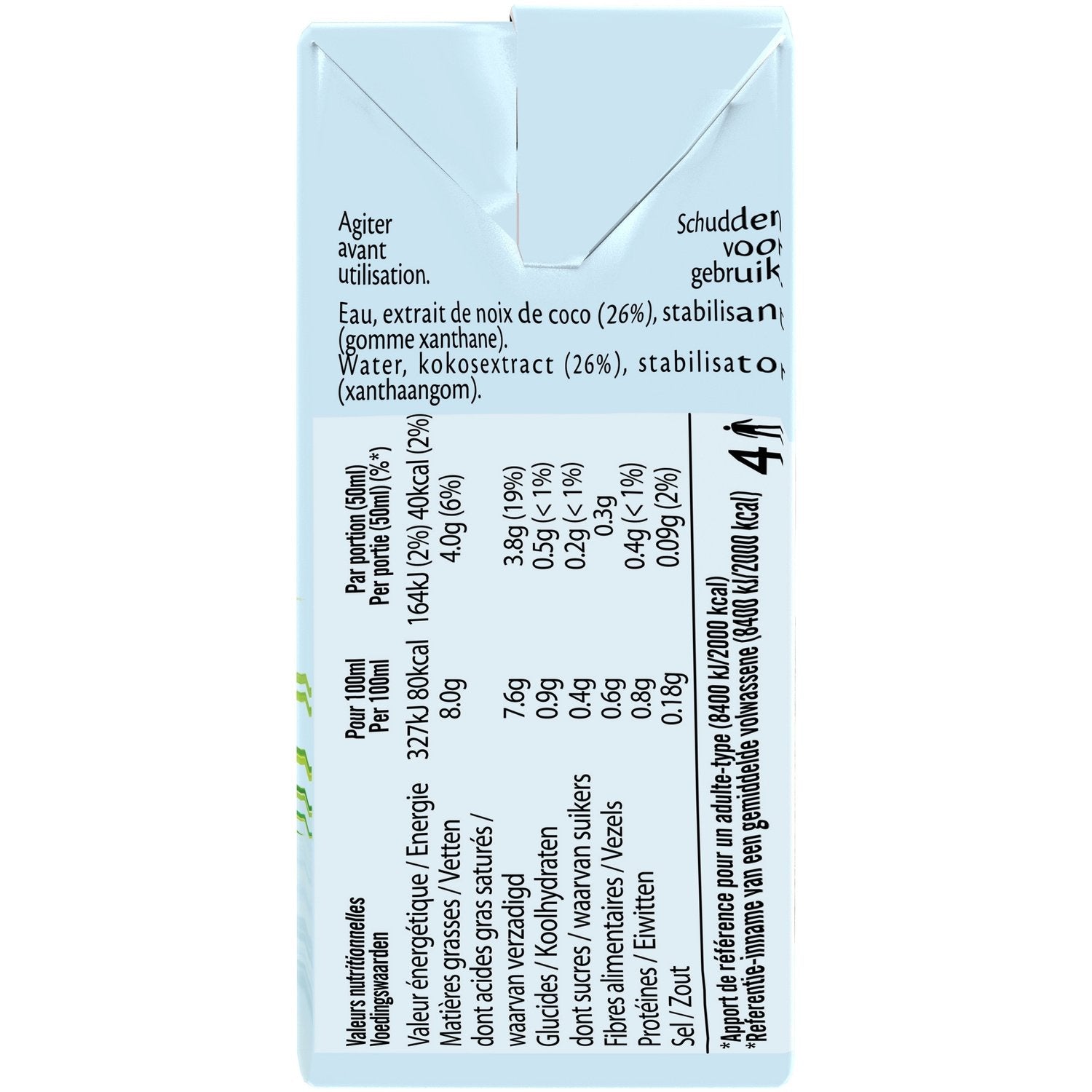 Ingrédients: eau (77%), extrait de noix de coco (22%).