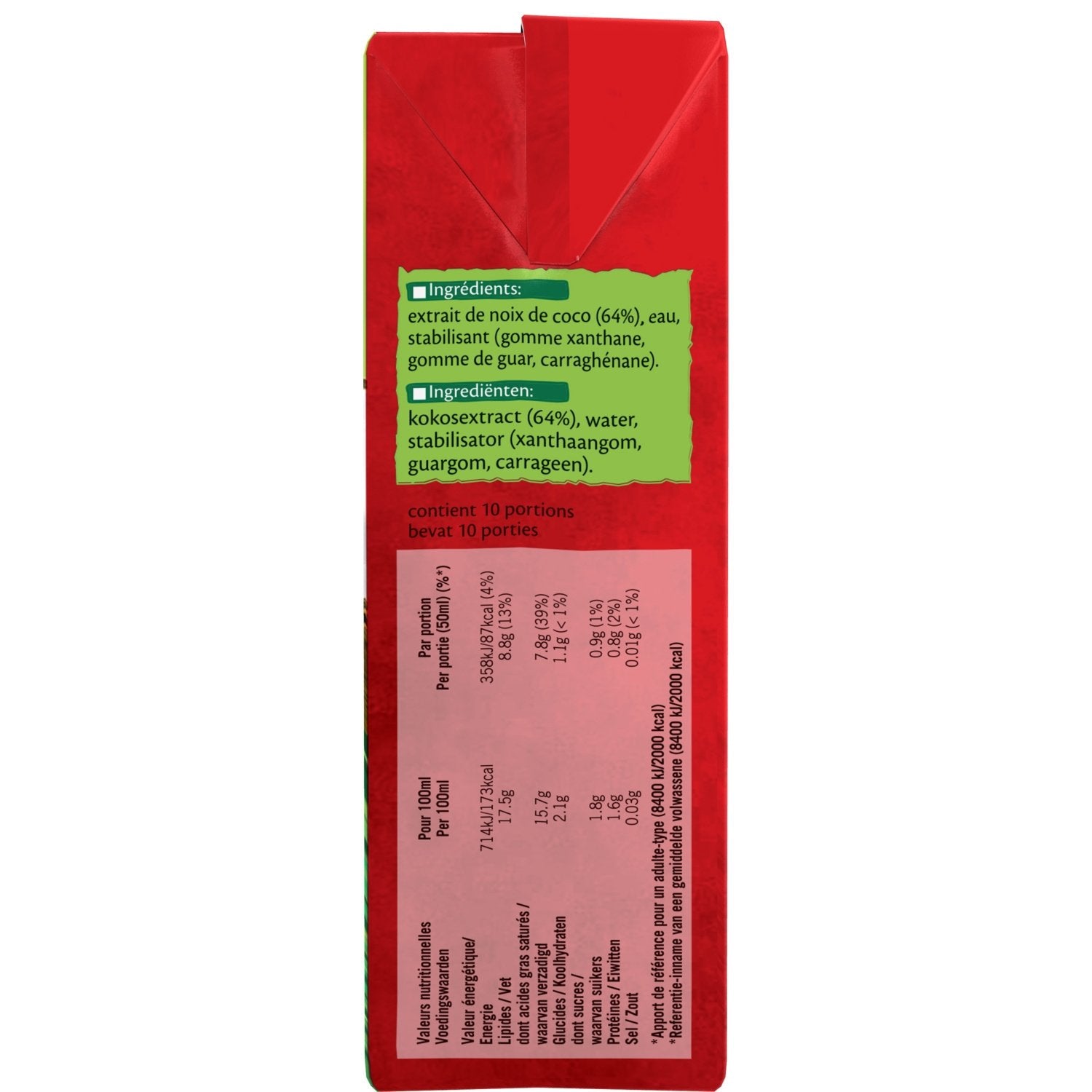 Ingrédients: extrait de noix de coco (64%), eau, stabilisant (gomme xanthane, gomme de guar).