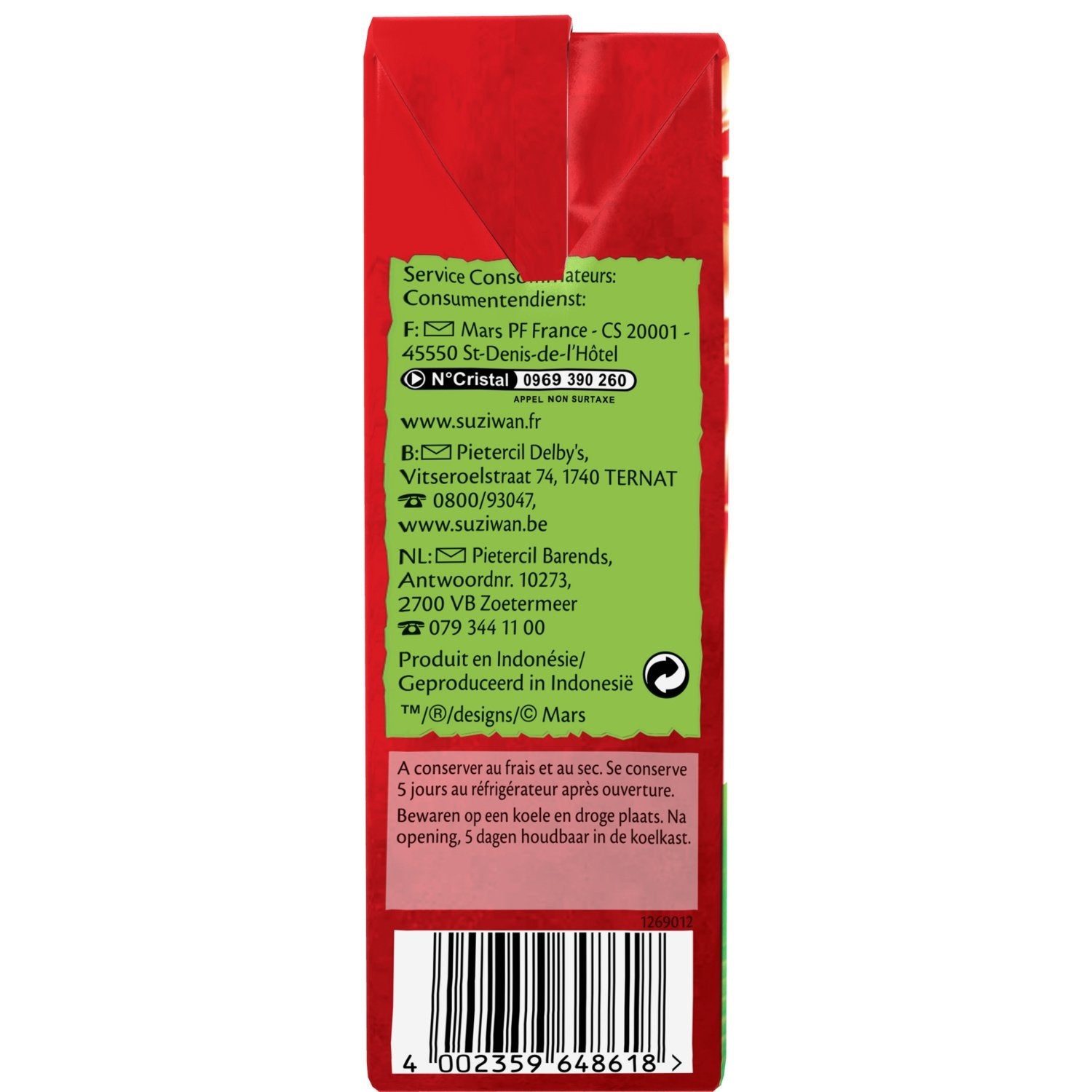 Le lait de coco Suzi Wan® ajoutera une touche d'Asie à vos recettes quotidiennes, qu'elles soient salées ou sucrées. Explorez la richesse de la cuisine asiatique (soupe thaï, poulet curry coco) ou utilisez-le comme alternative aux produits laitiers dans vos recettes habituelles. Il est sans conservateur, sans arôme artificiel et sans colorant artificiel Alternative végétale aux produits laitiers, utilisez-le pour vos recettes asiatiques de curry et soupes mais aussi pour twister vos plats plus traditionels et vos desserts. Nutriscore D Note Yuka : 48/100