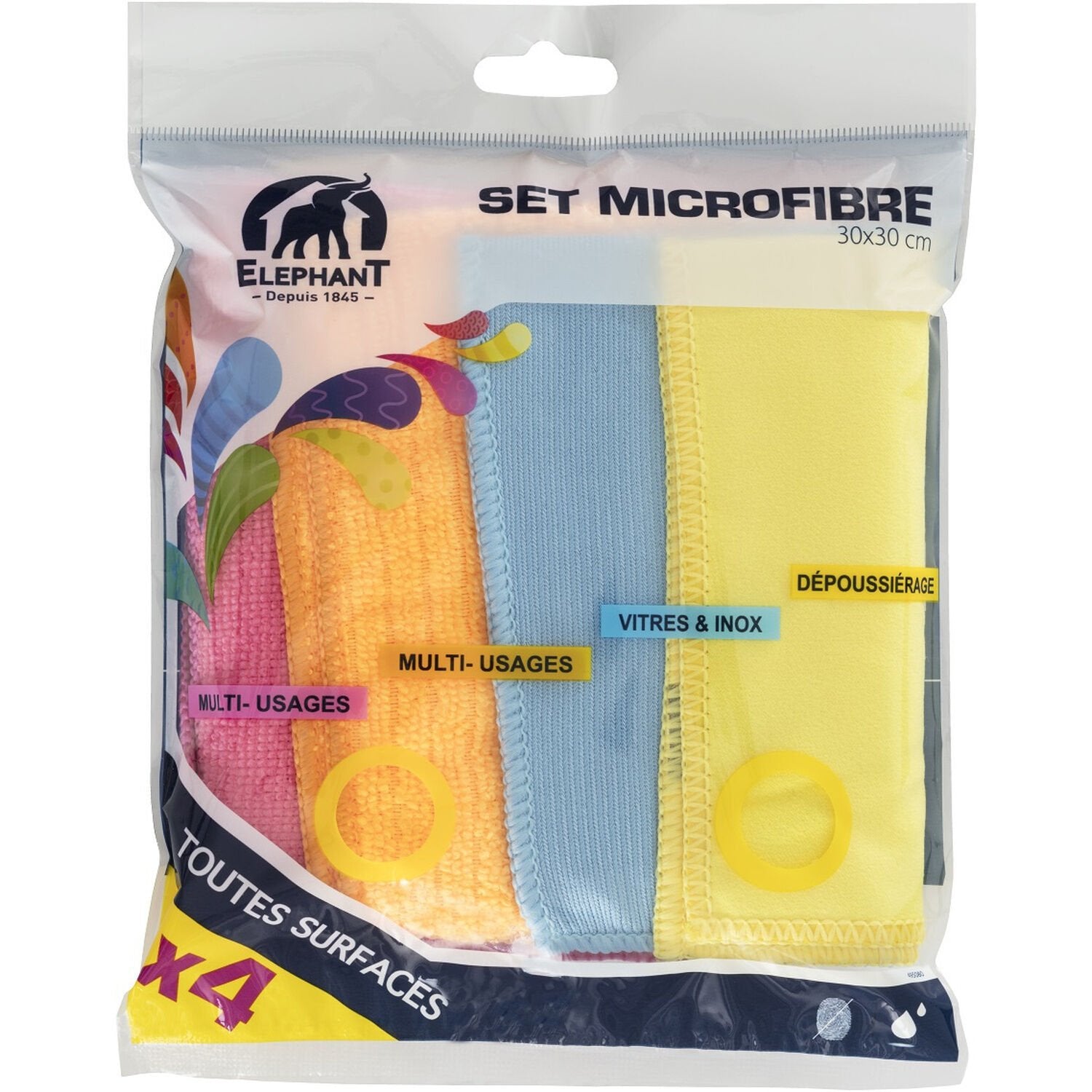 Set microfibre idéal pour nettoyer toutes les surfaces de la maison. Il contient 2 lavettes microfibre multi-usages, 1 lavette microfibre vitres et 1 chiffon microfibre dépoussiérant.