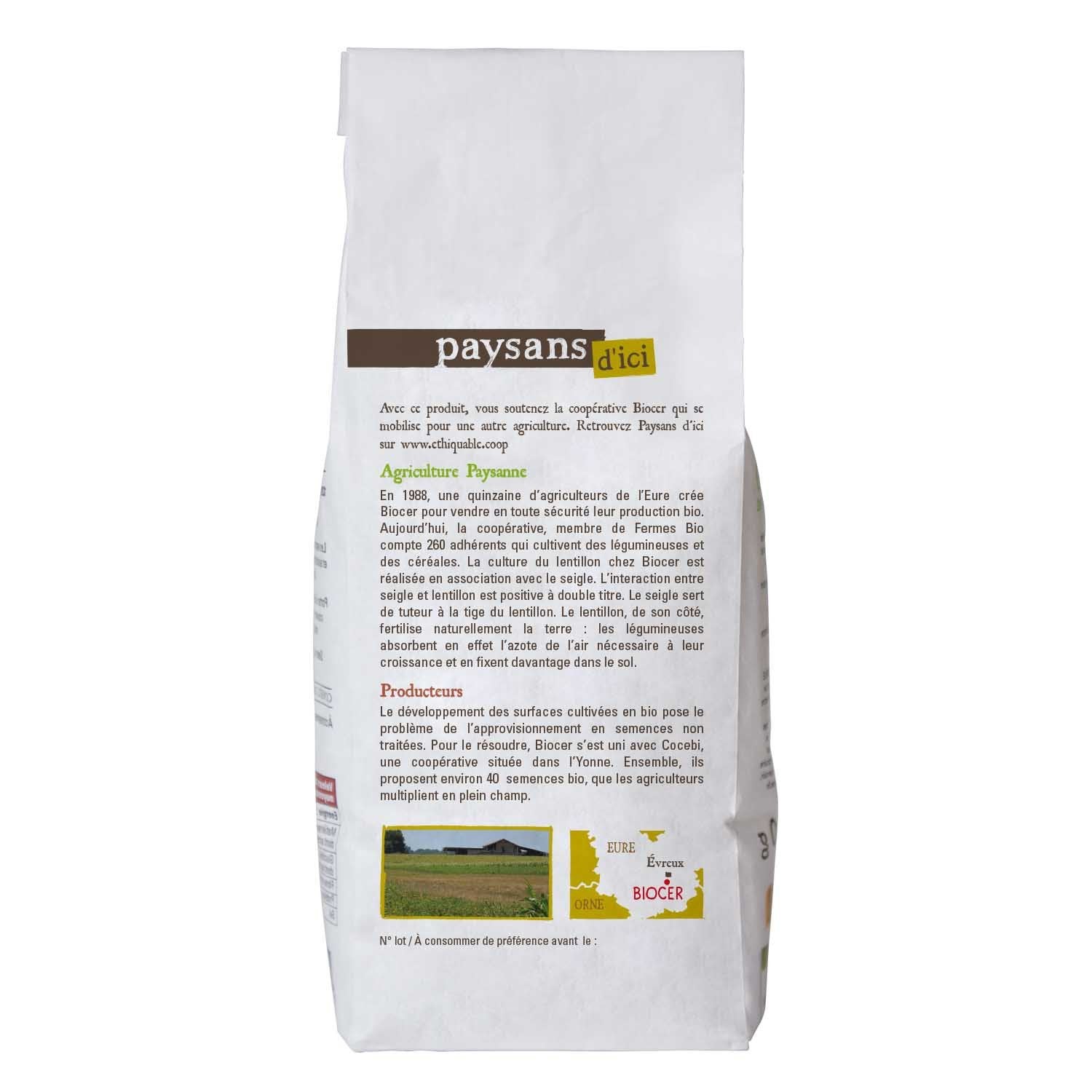 Ces lentilles rosées, assez fermes et prêtes en 20 minutes, offrent une texture plus consistante que la lentille corail. Leur couleur saumonée et leur saveur douce légèrement sucrée en font un ingrédient idéal pour les salades, les accompagnements de petit salé ou de poisson, ainsi que les veloutés colorés. Issues de l'agriculture biologique et du commerce équitable français, elles reflètent un modèle agricole durable porté par les producteurs normands de Biocer, engagés en agroécologie. CE QUE JE DEFENDS Lentille rose cultivée en France sans pesticides, ni produits chimiques Culture à taille humaine Prix équitable rémunérateur et achat direct Projet de commerce équitable à impact Traçabilité et transparence de l'origine : Normandie Entièrement fabriquée en France par les producteurs de la coopérative Biocer Plus de valeur ajoutée pour les producteurs Origine France et issu du commerce équitable Fabriqué en France