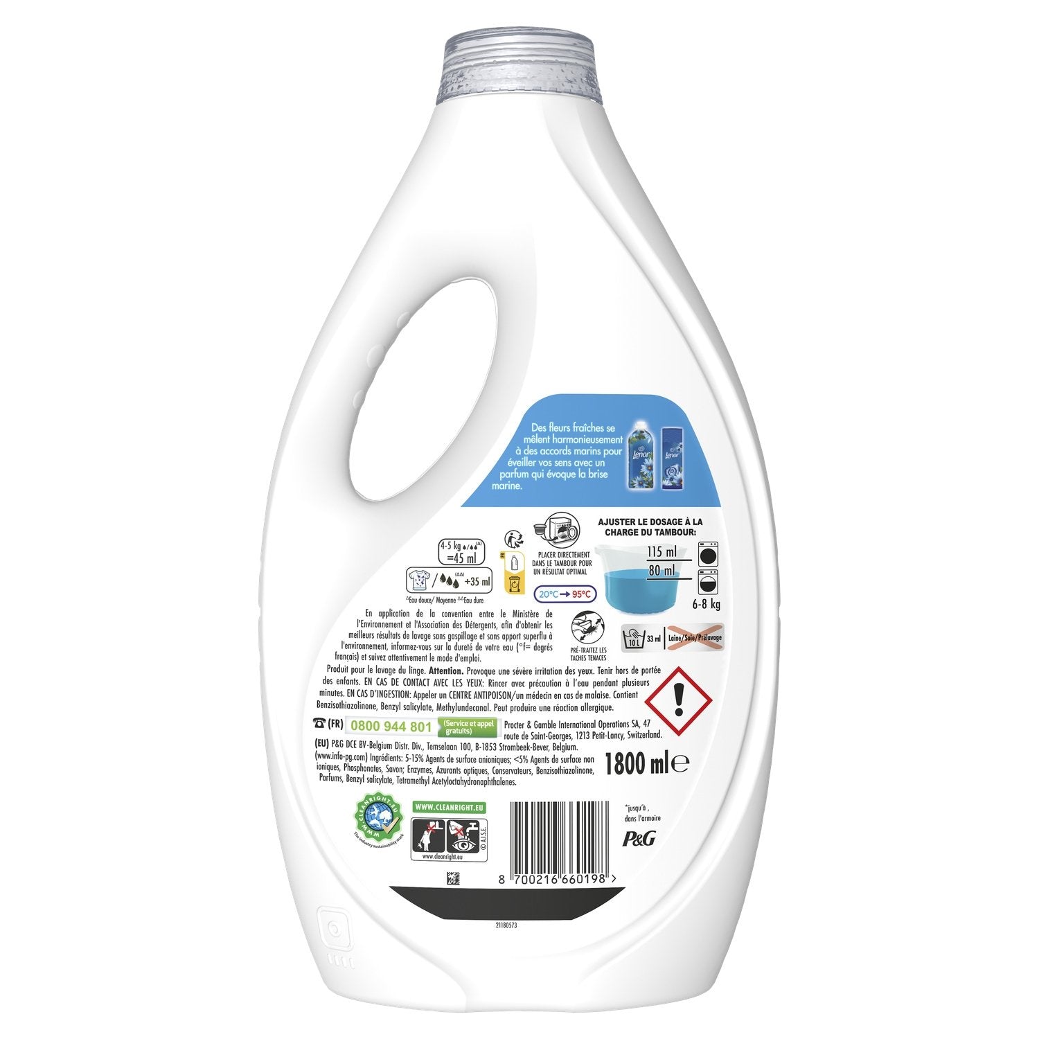 LESSIVE LIQUIDE Dash 2en1 pour un nettoyage en profondeur et jusqu'à 3 SEMAINES DE FRAÎCHEUR (dans l'armoire) et Lenor ,Des fleurs fraîches se mêlent harmonieusement à des accords marins pour éveiller vos sens avec un parfum qui évoque la brise marine , POUR UN MAXIMUM DE PLAISIR : À utiliser avec l'adoucissant Lenor et le parfum de linge Lenor pour un nettoyage en profondeur, et des vêtements doux et irrésistiblement frais ,FABRIQUÉE EN FRANCE : / - Dash est une marque française traditionnelle avec plus de 50 ans d'expérience. / - Production à Amiens près de Paris ,Pour de meilleurs résultats, mettez le bouchon de dosage contenant la lessive dans le tambour de la machine , Cette lessive liquide polyvalente et facile à utiliser est idéale pour le prétraitement des vêtements très sales