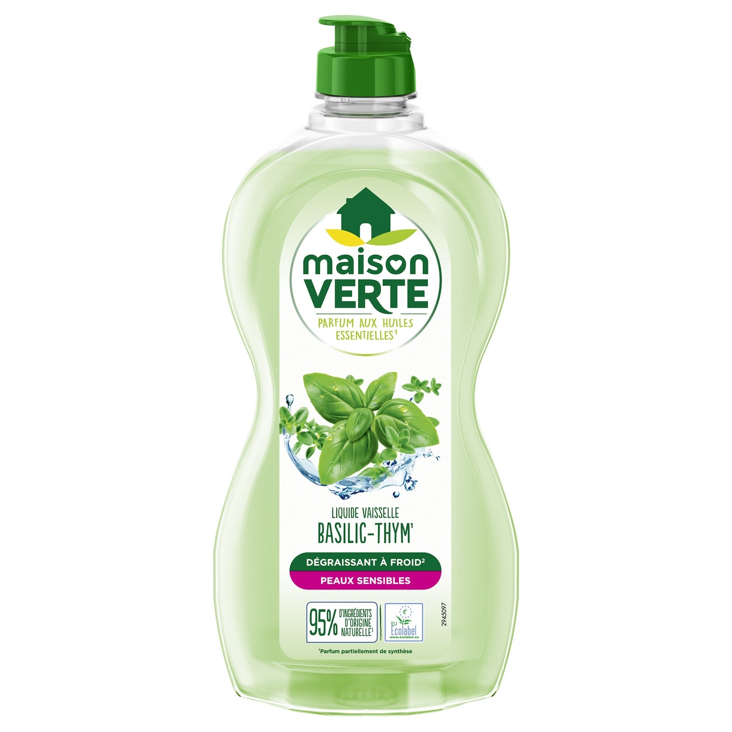 Liquide Vaisselle Basilic Thym Hypoallergénique Dégraissant à Froid Peaux Sensibles MAISON VERTE