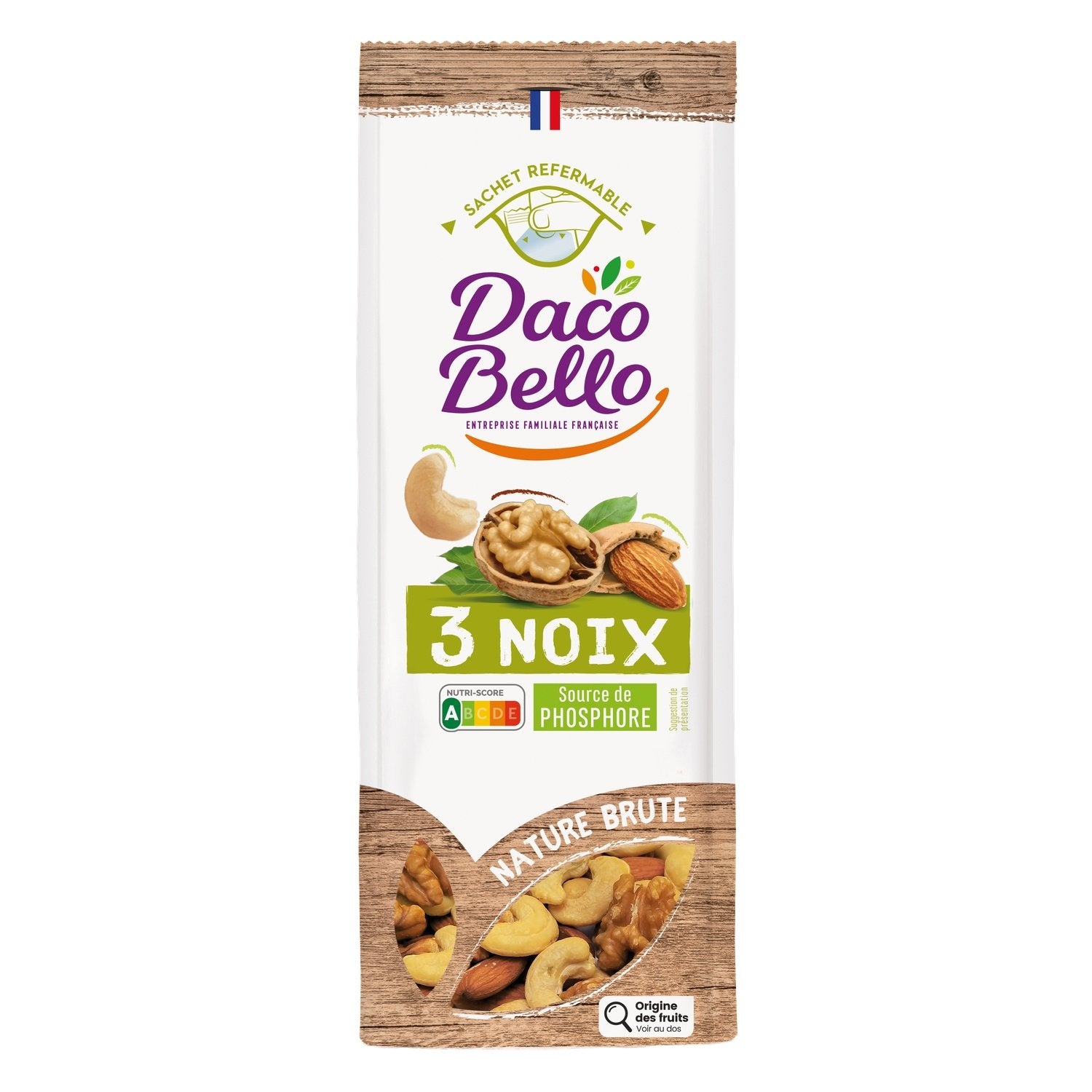 Dégustez et profitez toute la journée du goût naturel de nos fruits secs 100 % naturels, sans sel ajouté, sans transformation et de qualité supérieure : cerneaux de noix entiers premium, noix de cajou provenant de la filière responsable de Côte d'Ivoire et des amandes au calibre généreux.