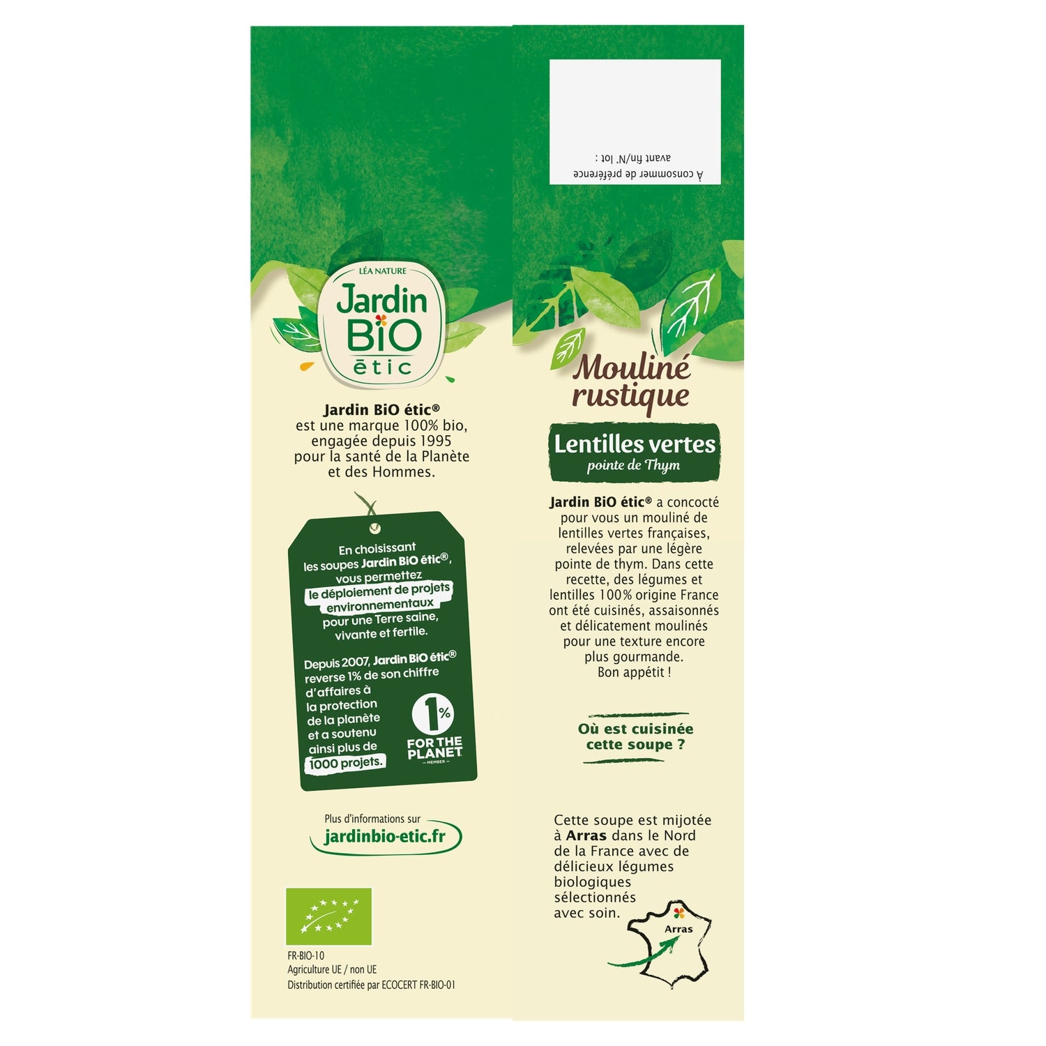JARDIN BIOLOGIQUE/MOULINE LENTILLES VERTES POINTE DE THYM BIO 1L/TETRAPACK