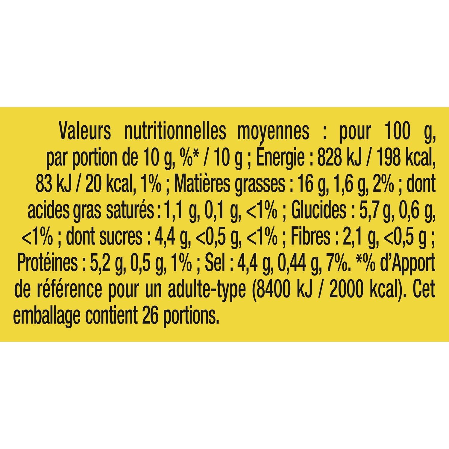 sel : 4.4 g / 100 g