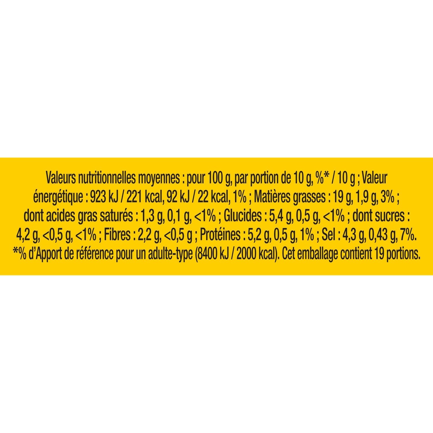 Les informations présentées (ingrédients, valeurs nutritionnelles, conseils d’utilisation, etc.) sont fournies à titre indicatif et peuvent varier selon les approvisionnements. Nous vous invitons à vérifier systématiquement les informations figurant sur l’emballage avant consommation. Photo non contractuelle – l’apparence, le conditionnement ou certains détails du produit peuvent différer de l’illustration. Le design de l'emballage est susceptible d’évoluer.