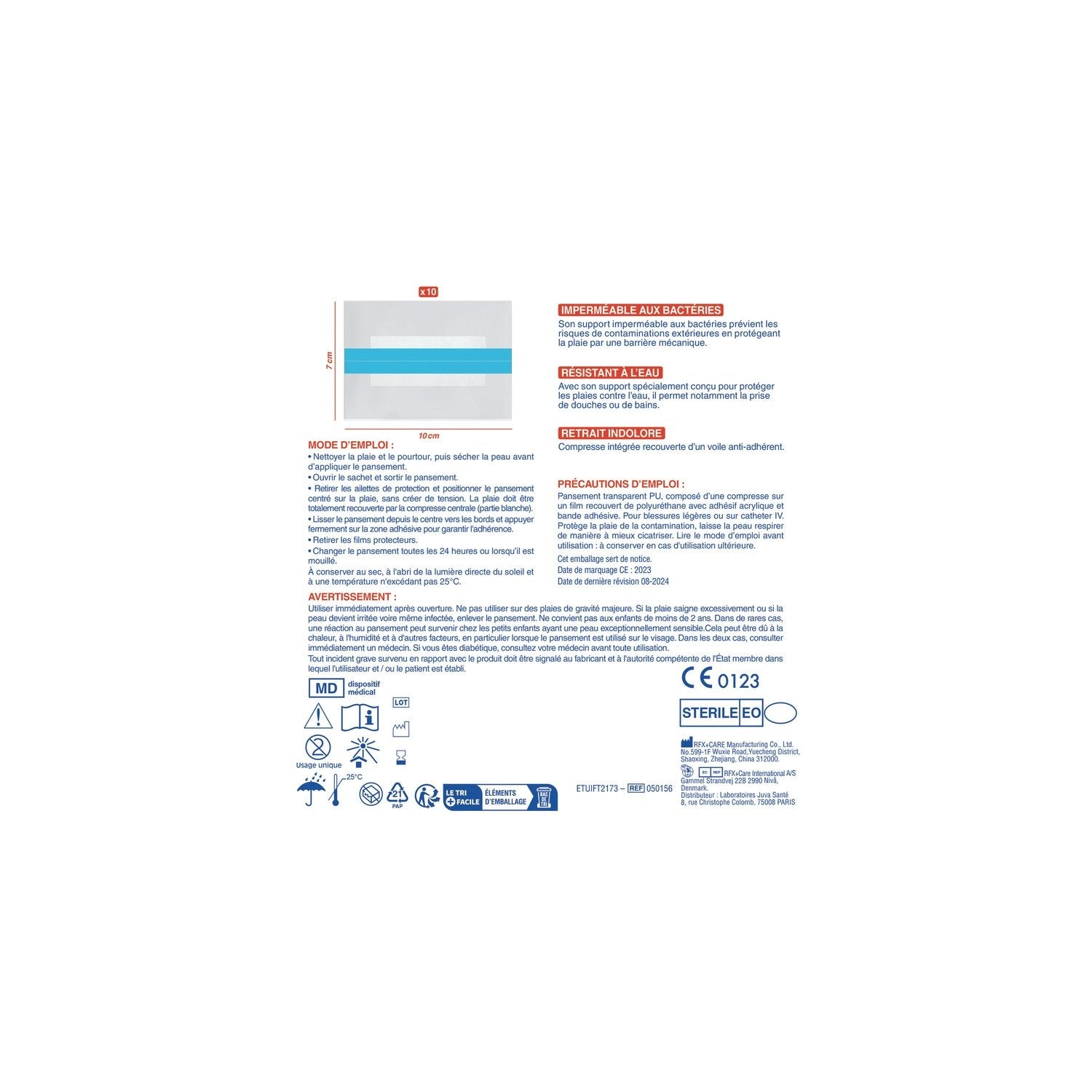 • Avec son support spécialement conçu pour protéger les plaies contre l'eau, il permet en particulier la prise de douches ou de bains. • Son support imperméable aux bactéries prévient les risques de contaminations extérieures en protégeant la plaie par une barrière mécanique. • Adhésif sur les quatre côtés. • Compresse intégrée recouverte d'un voile anti-adhérent, pour un retrait indolore. • Contre indiqué pour les enfants de moins de 2 ans.