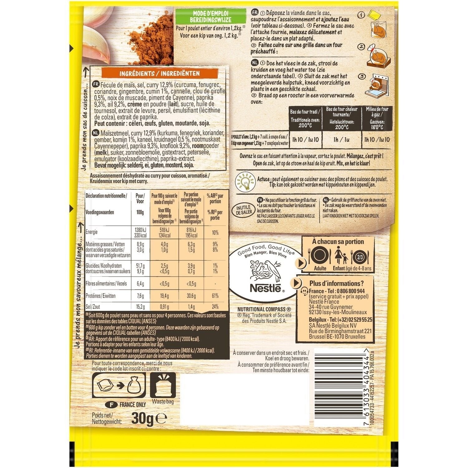 Réinventez vos plats du quotidien avec PAPILLOTES de MAGGI et son subtil mélange d'herbes et d'épices ! Vous réussirez à coup sûr un poulet délicieux, tendre et juteux, sans ajouter de matières grasses. Craquez pour PAPILLOTES Poulet Curry à l'Indienne de MAGGI et réalisez, en seulement 3 étapes, un poulet savoureux aux notes intenses de curry.
