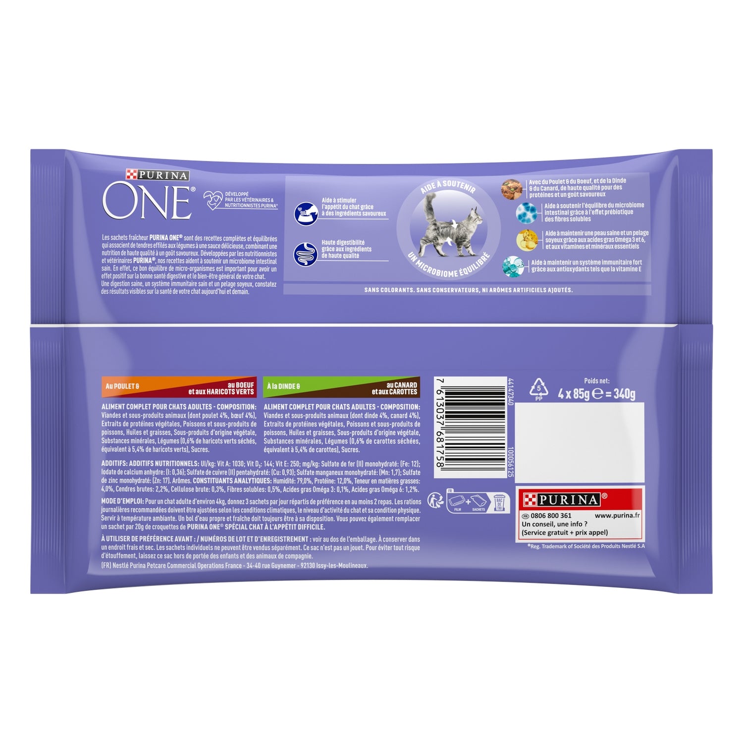 Pâtée pour Chat Adulte Appétit Difficile en Sauce Poulet Boeuf Dinde Canard PURINA ONE