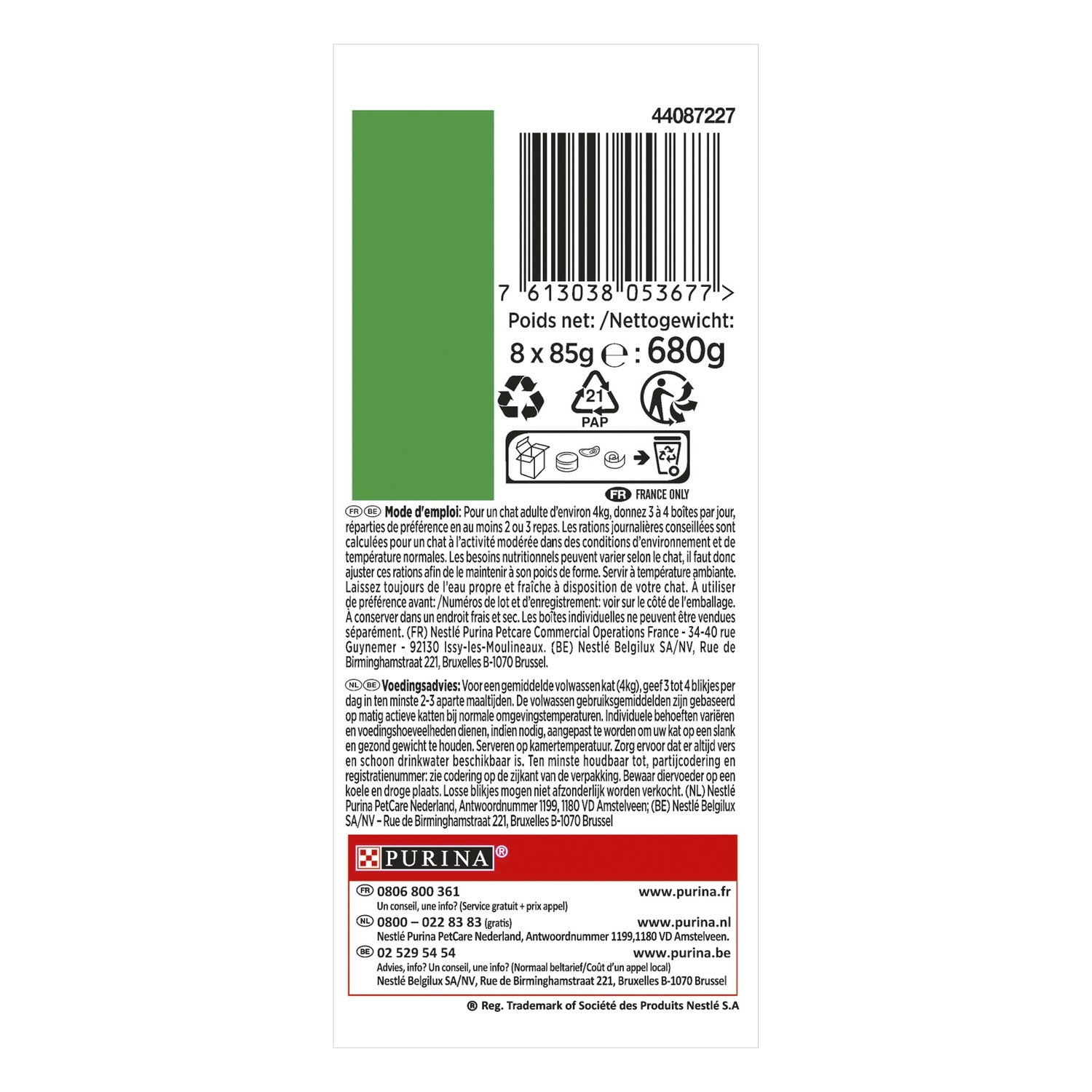 Aliment complet pour chats adultes Préparé avec du Poisson de l'Océan et avec sa garniture d'épinards et riz / Préparé avec du Thon et avec sa garniture de Tomates et Riz Avec des Ingrédients Naturels Sélectionnés, Sans colorants ajoutés. Sans conservateurs et arômes artificiels ajoutés Poisson de l'Océan en premier ingrédient / Thon en premier ingrédient Fabriqué en France Emballage recyclable* *Suivez les consignes de tri de votre pays,Avec des Ingrédients Naturels Sélectionnés,Sans colorants ajoutés. Sans conservateurs et arômes artificiels ajoutés,Poisson de l'Océan en premier ingrédient / Thon en premier ingrédient,Fabriqué en France,Emballage recyclable*