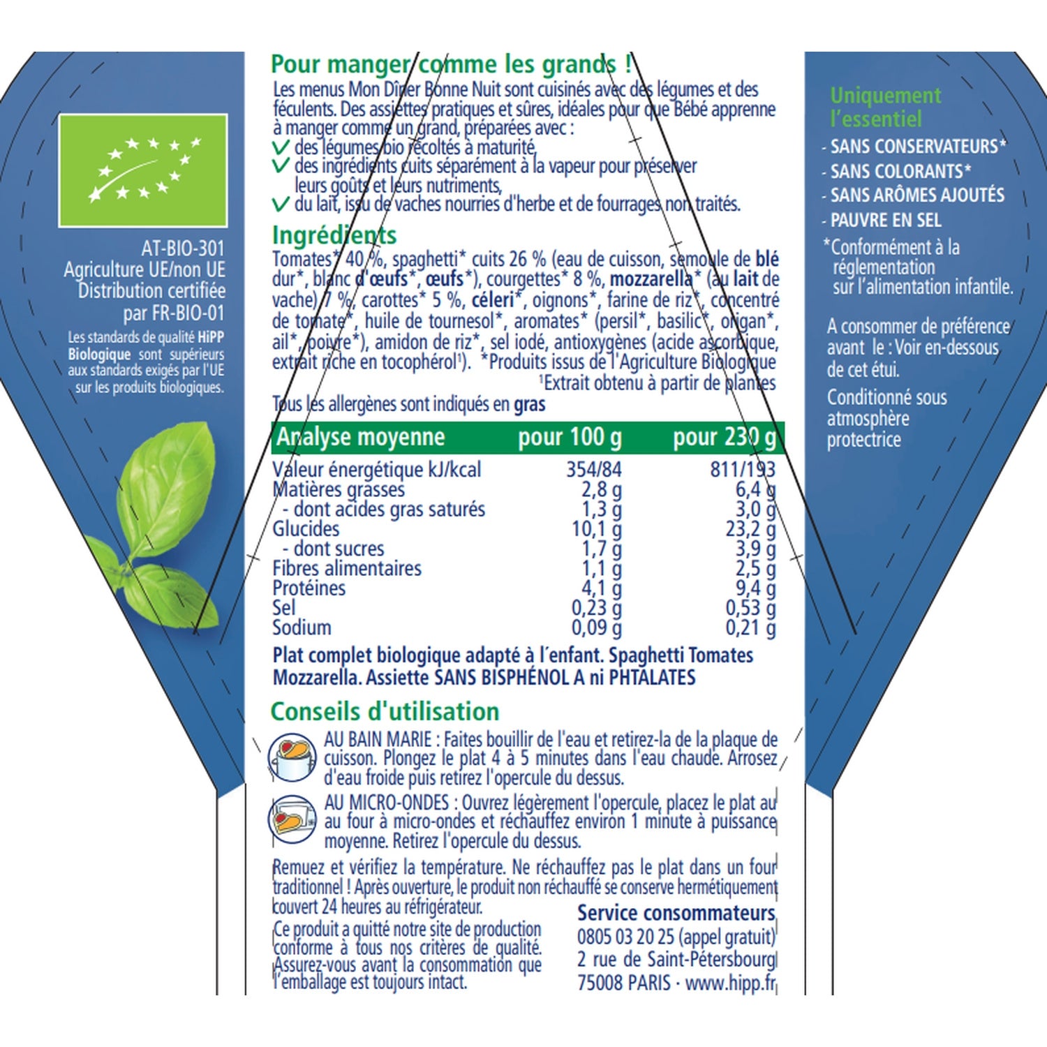 Plat Bébé Dès 12 Mois Spaghetti Tomates Mozzarella Bio HIPP BIOLOGIQUE